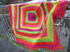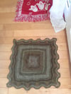 This blanket can be made in any yarn and in multiple sizes. Make a special blanket for a doll or a preemie baby, for a baby shower gift, or a large and cozy lapghan for an adult. All is possible with this simple pattern with its elegant border. Made in white, it makes a lovely christening blanket.