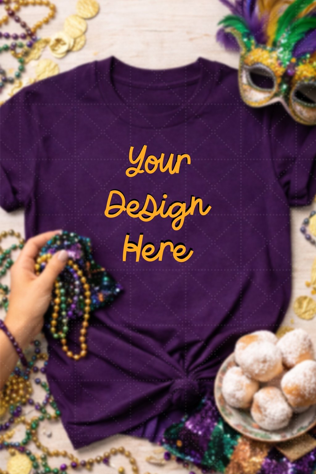 Mardi Gras Flat lay Purple Tee Mock