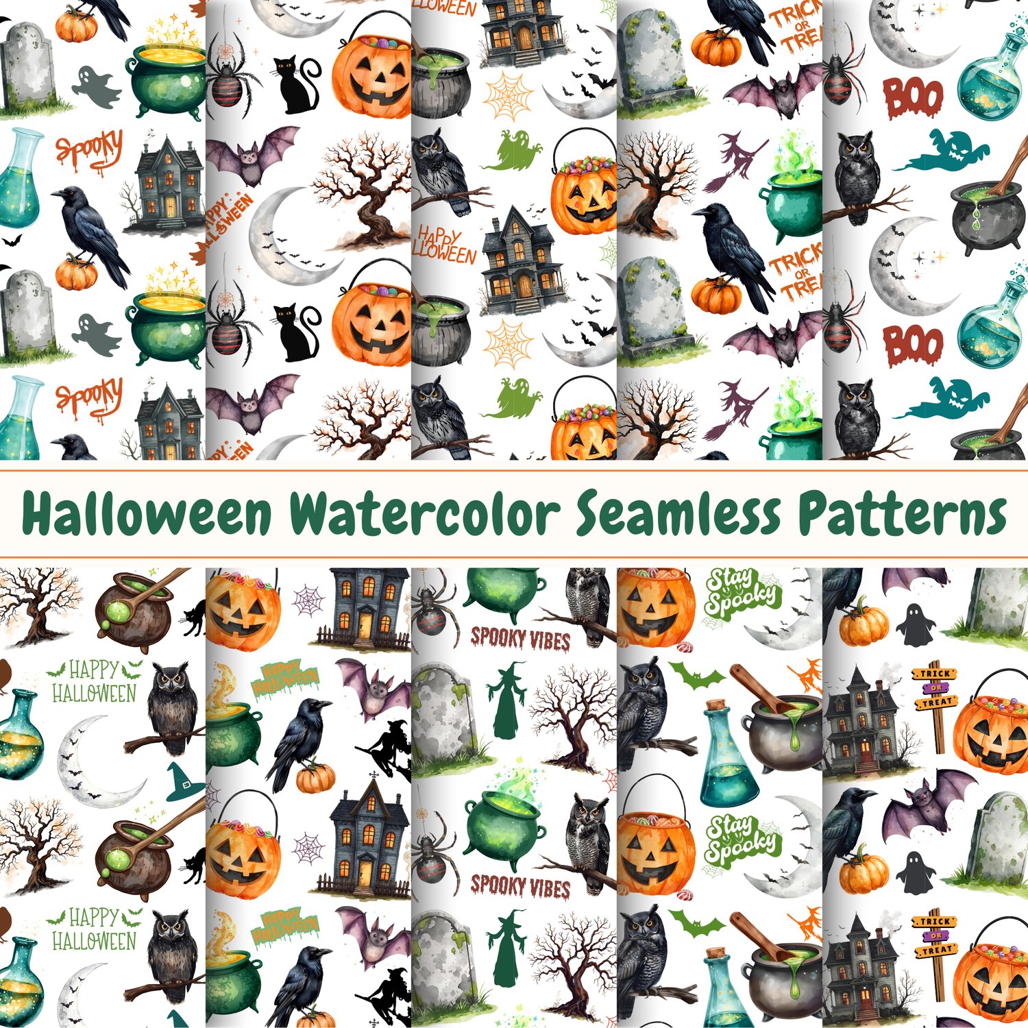 Spooky Watercolor Seamless Patterns - 10 Halloween Digital Designs