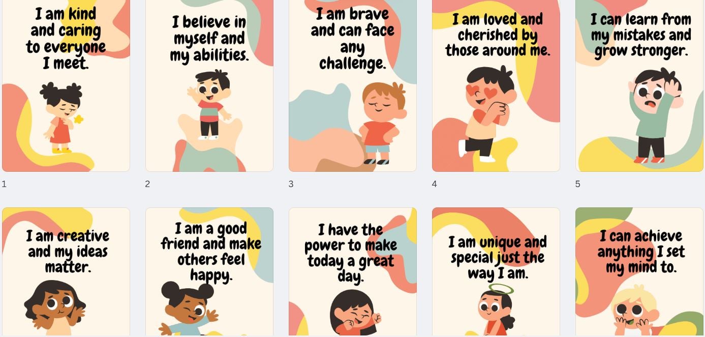 Bright and colourful with clear messaging to support children's mental health and self confidence.