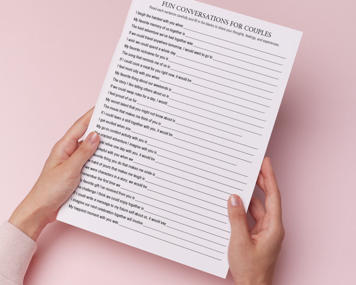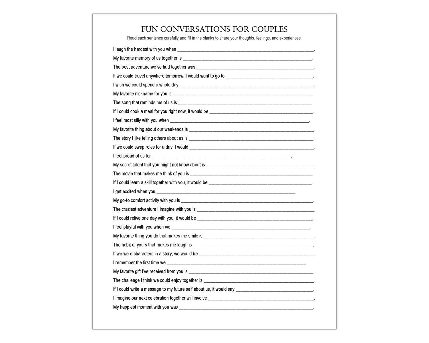 Fun Conversations for Couples Worksheet, Couples Conversation Starters, Icebreaker Questions, Date Night Game, Valentines Day Activity