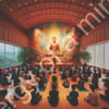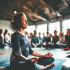 The peaceful energy of a mindfulness training session, captured with a wide-angle lens to include the crowd.