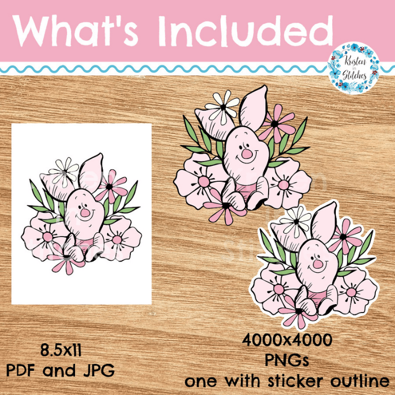 Piglet Printable PNG PDF Sticker or DTF Iron On Transfer Transparent File, DIY Print & Cut, Shirt Applique, Classic Winnie the Pooh