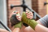 Long slipped stitches stretch all the way around these warm and cozy fingerless mitts. This pattern is stretchy, quick and simple to work, and gives great dynamic results in both variegated and solid yarns.