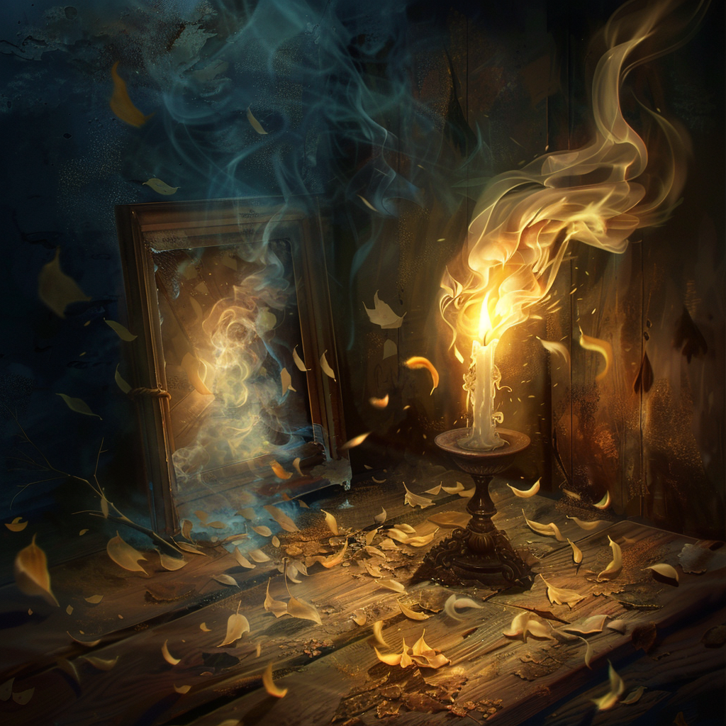 Firelit altar image — ideal for visualization, emotional trance, or dream work activation