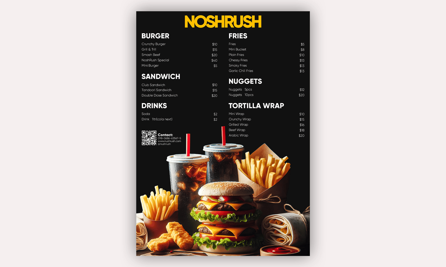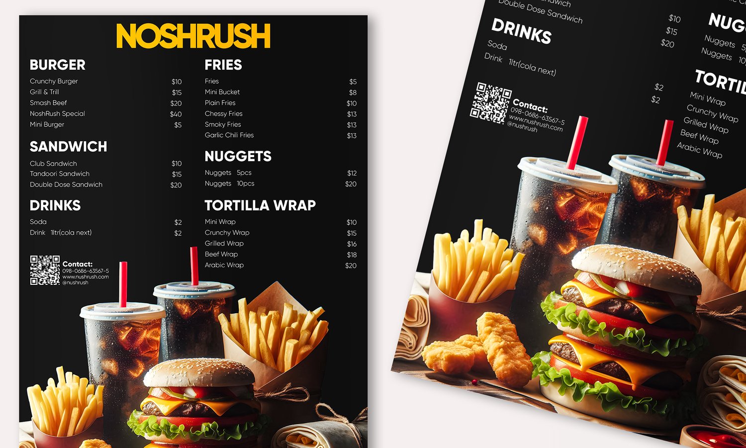 Grab this bold and modern fast food menu template – fully editable and 100% free.