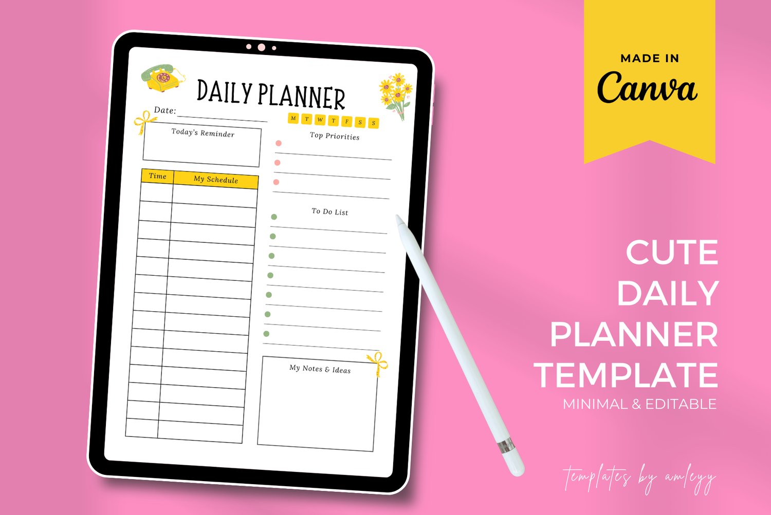 Retro Aesthetic Daily Planner Template | Digital & Printable Day Organizer with To-Do List, Hourly Schedule & Habit Tracker | Editable in Canva