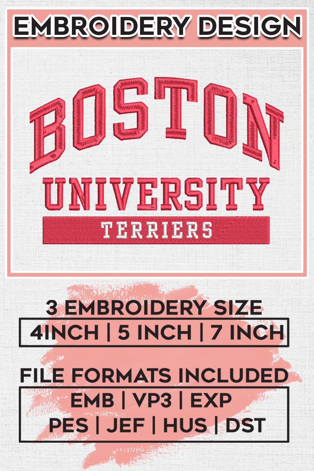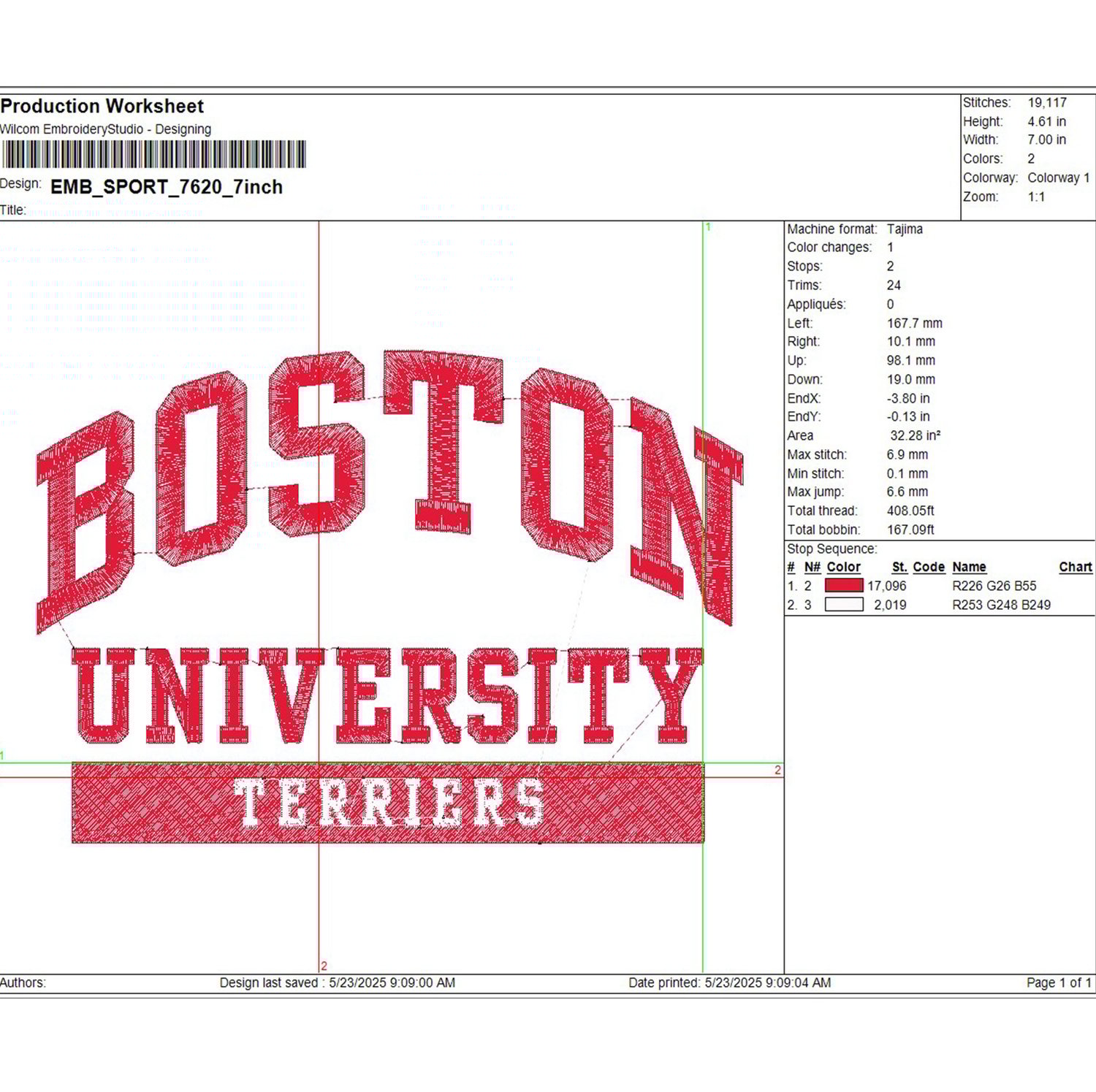Boston University Terriers Football Team Writing Logo Embroidery Designs, NCAA Boston University Terriers Machine Embroidery Files, NCAA Logo embroidery designs, NCAA Terriers Logo, Digital Download