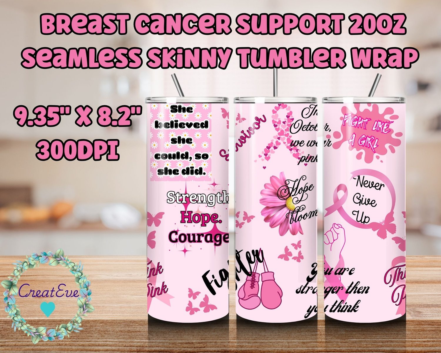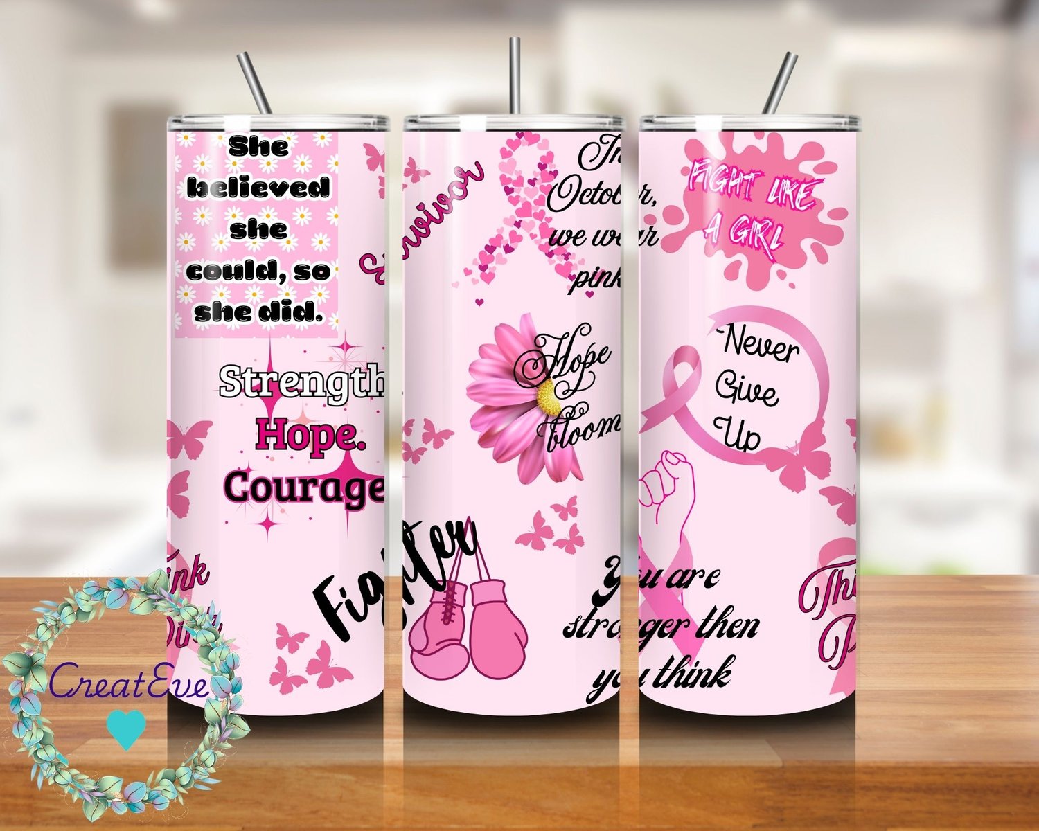 Breast Cancer Pink Ribbon Motivational Quote 20oz Tumbler Wrap Bundle