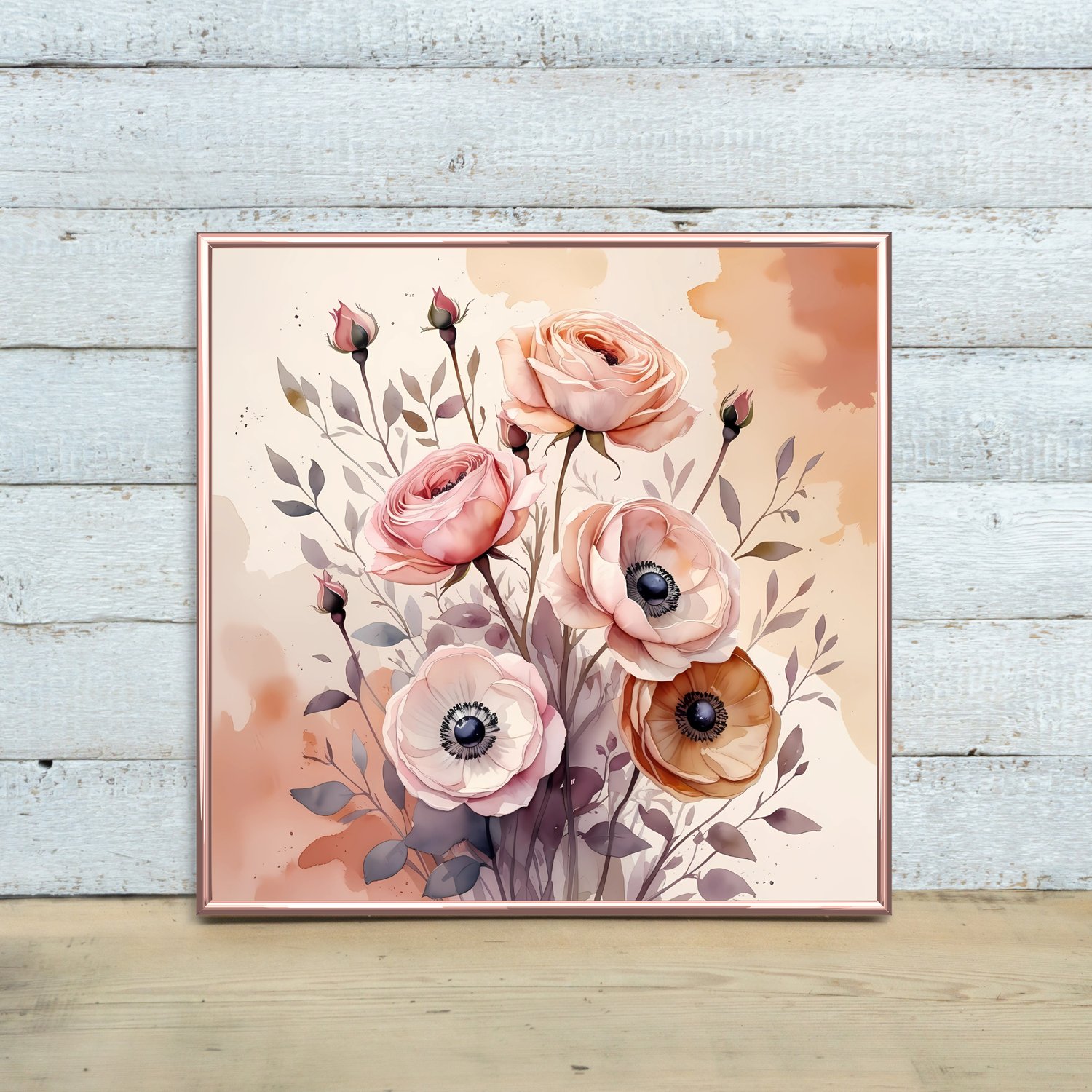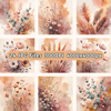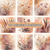 A dreamy collection of 24 botanical watercolor backdrops in a soothing palette of muted peach, soft blush pink, warm ochre and dusty mauve, featuring an abstract background with blended, softly blurred colors. Perfect for creating elegant designs with a soft, ethereal touch.
