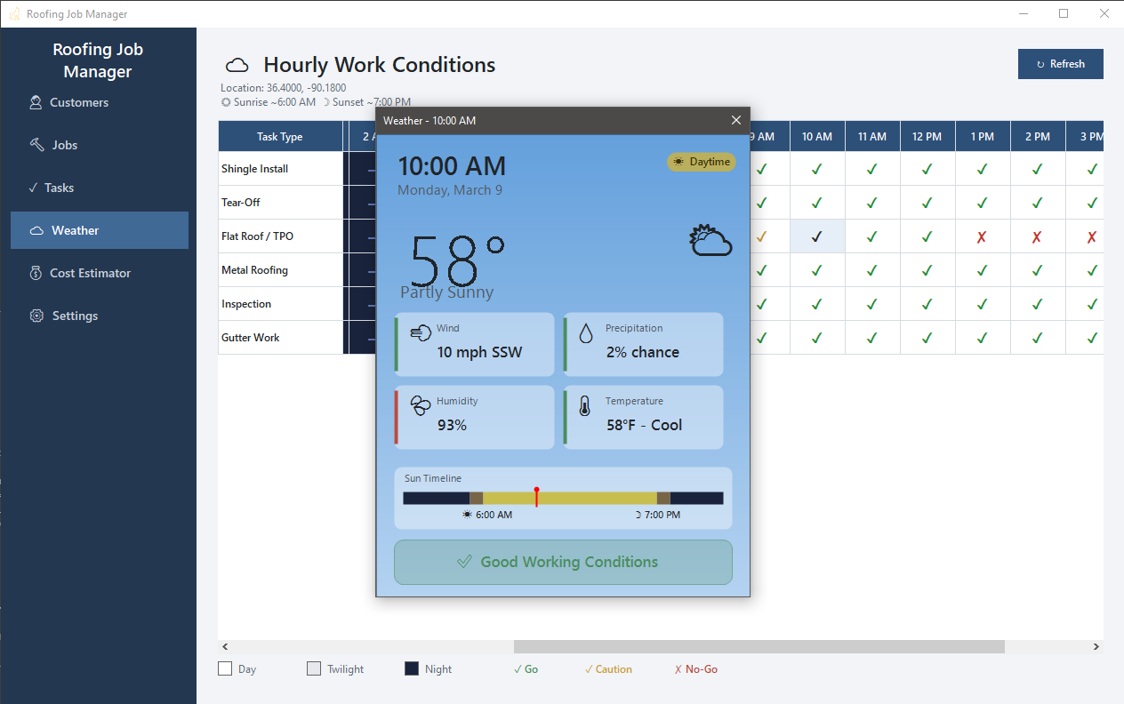 Roofing Job Manager — Track Jobs, Check Weather Conditions, Create Estimates & Get Paid Faster (Windows, No Monthly Fees)