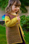 Increases/decreases, provisional cast on, bias bind off (instructions included), working simple mosaic knitting (slipped stitches) colourwork from charts or written instructions (no stranding), modified set-in sleeve sweater construction, worked flat, bottom up and top down, seaming for armholes only, picking up stitches, buttonholes and sewing on buttons.