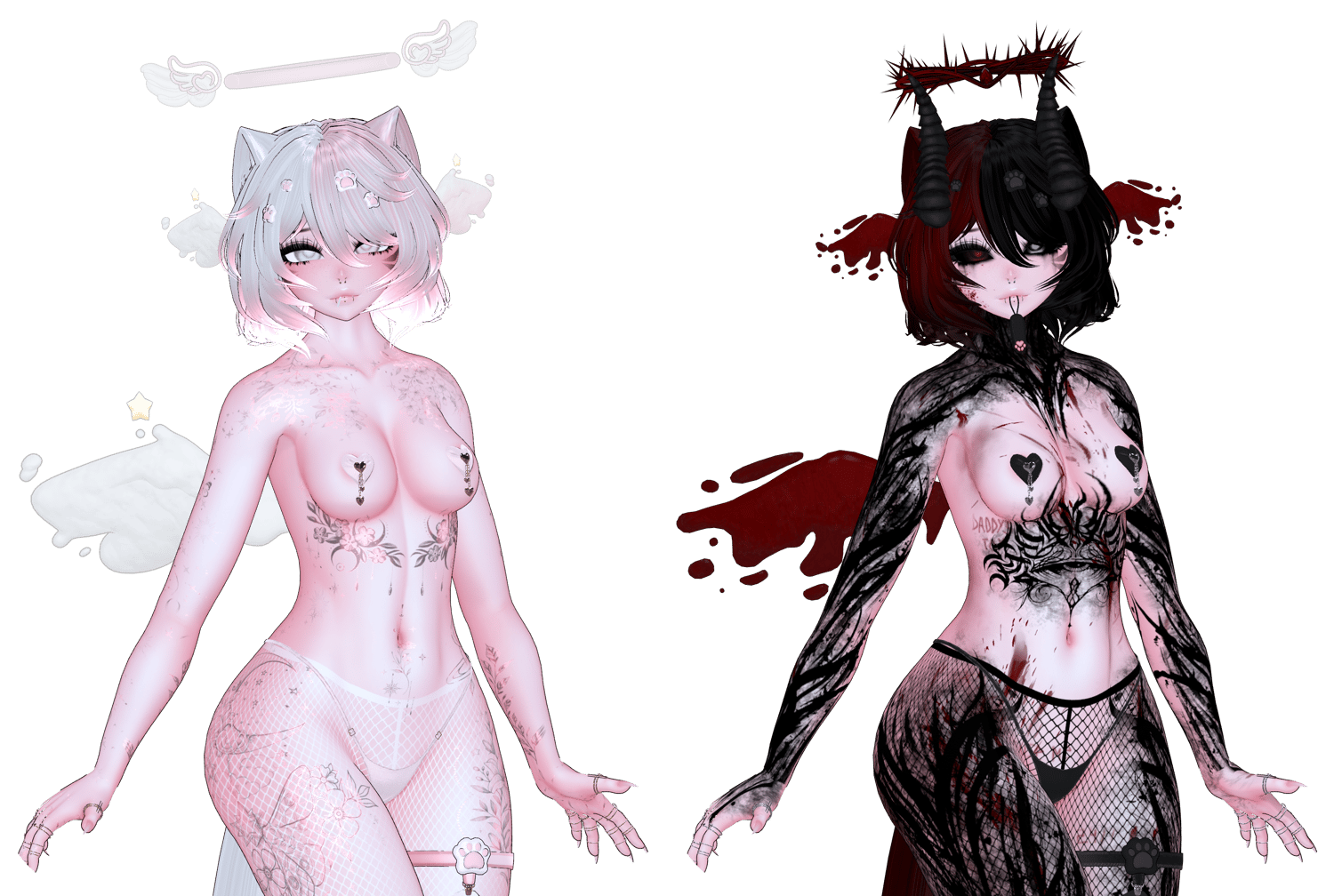 - ANGEL TATTOO | ANGEL TATTOO HUE | FACE STRIPES | FACE BLUSH | DEMON MAKEUP | DEMON TATTOO | BLOOD TATTOO | STOCKINGS TATTOO | STOCKINGS LIGHT