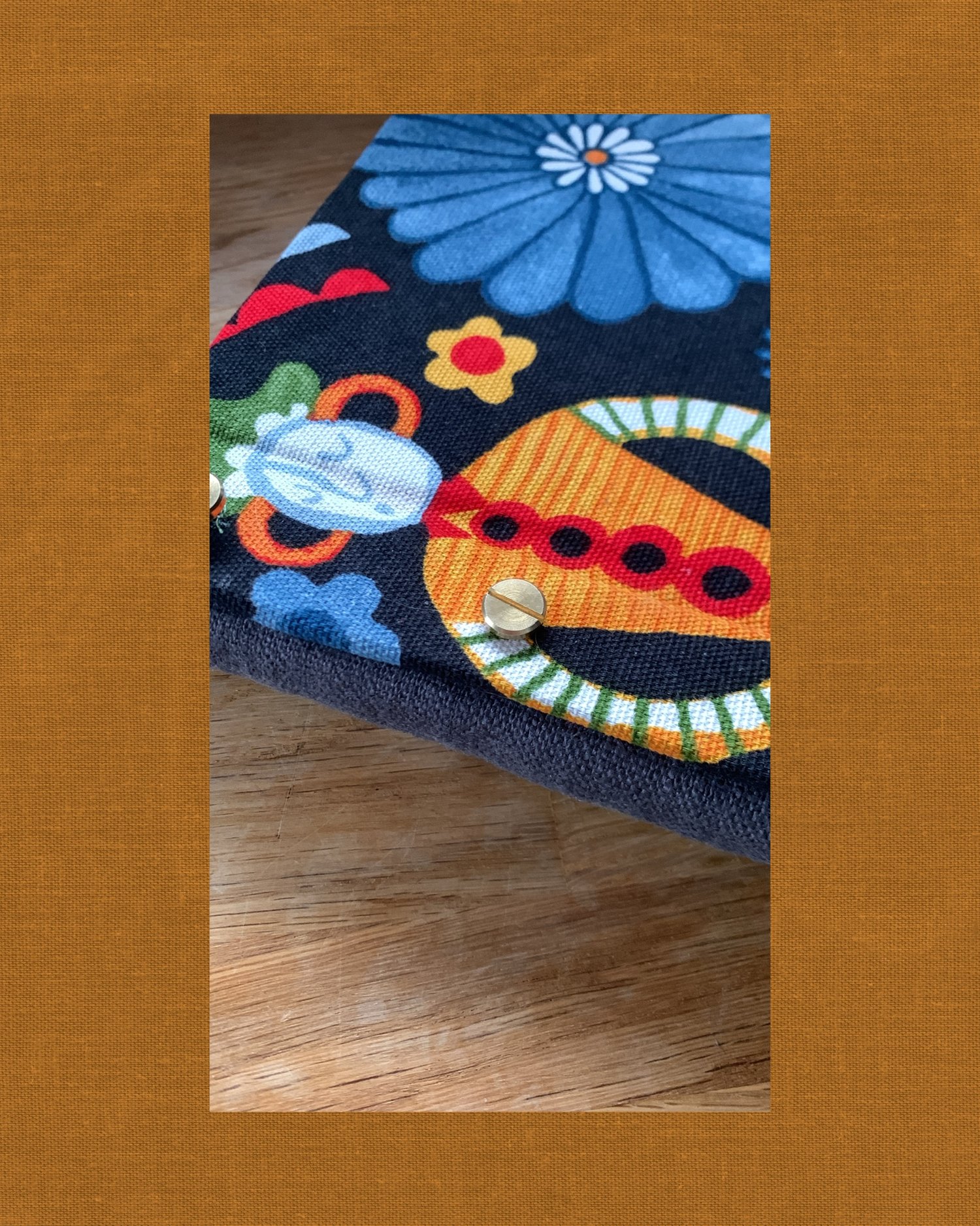 - Handgeschnittener Stoffeinband mit individuellem Namensetikett
