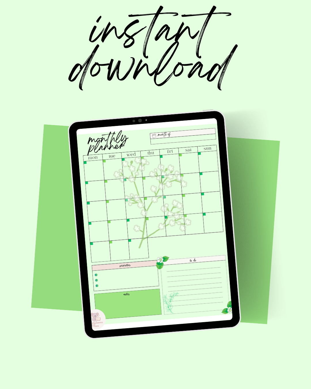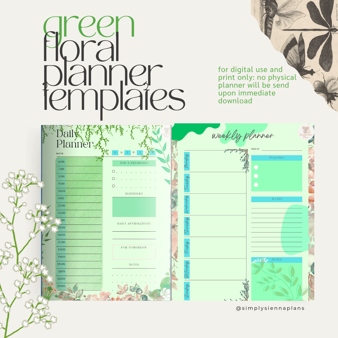 Bring beauty and organization into your routine with this Green Floral Planner Bundle. Designed with soft greenery and elegant floral accents, this set includes everything you need to plan your days, weeks, and months with ease.