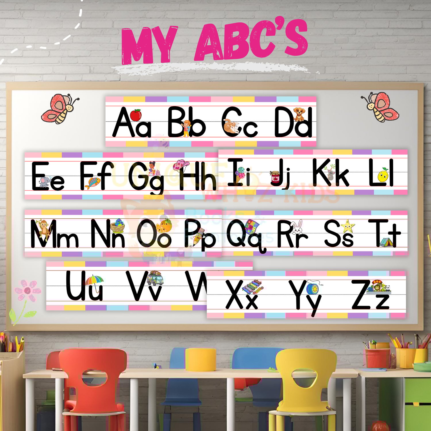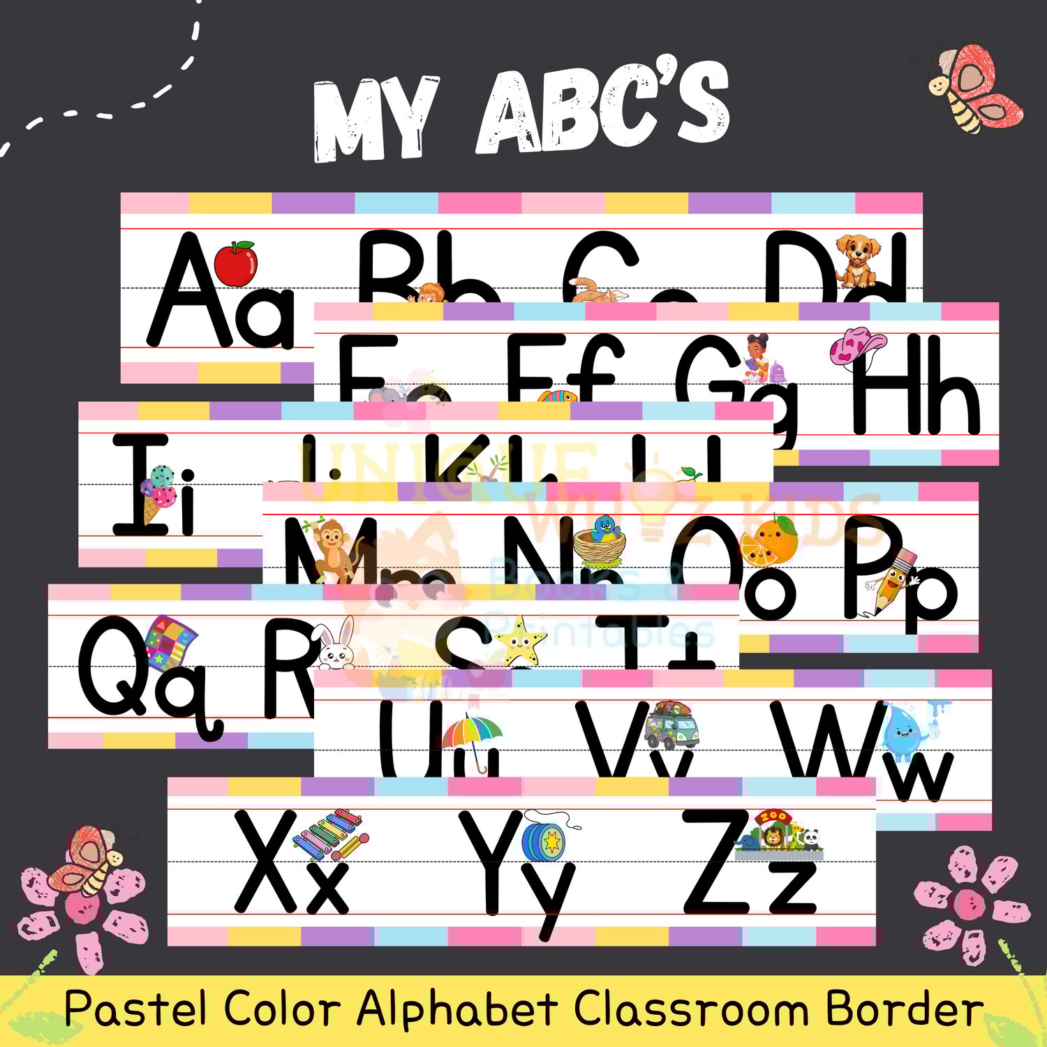 Make learning the alphabet exciting! Download our Pastel Color Alphabet Classroom Border 7pcs Set now and create an inspiring space for young learners to thrive! 🌟