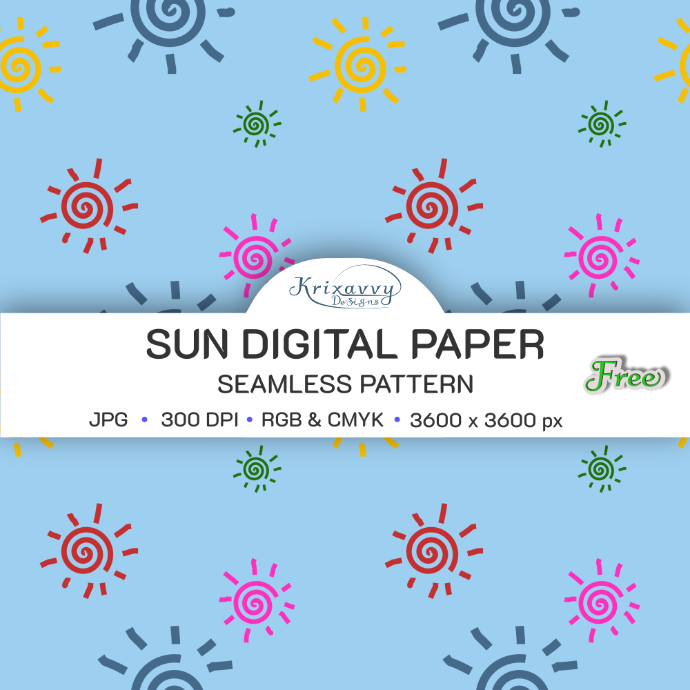 Get your *FREE (or name your price) SUN in different colors digital paper seamless and repeating pattern.