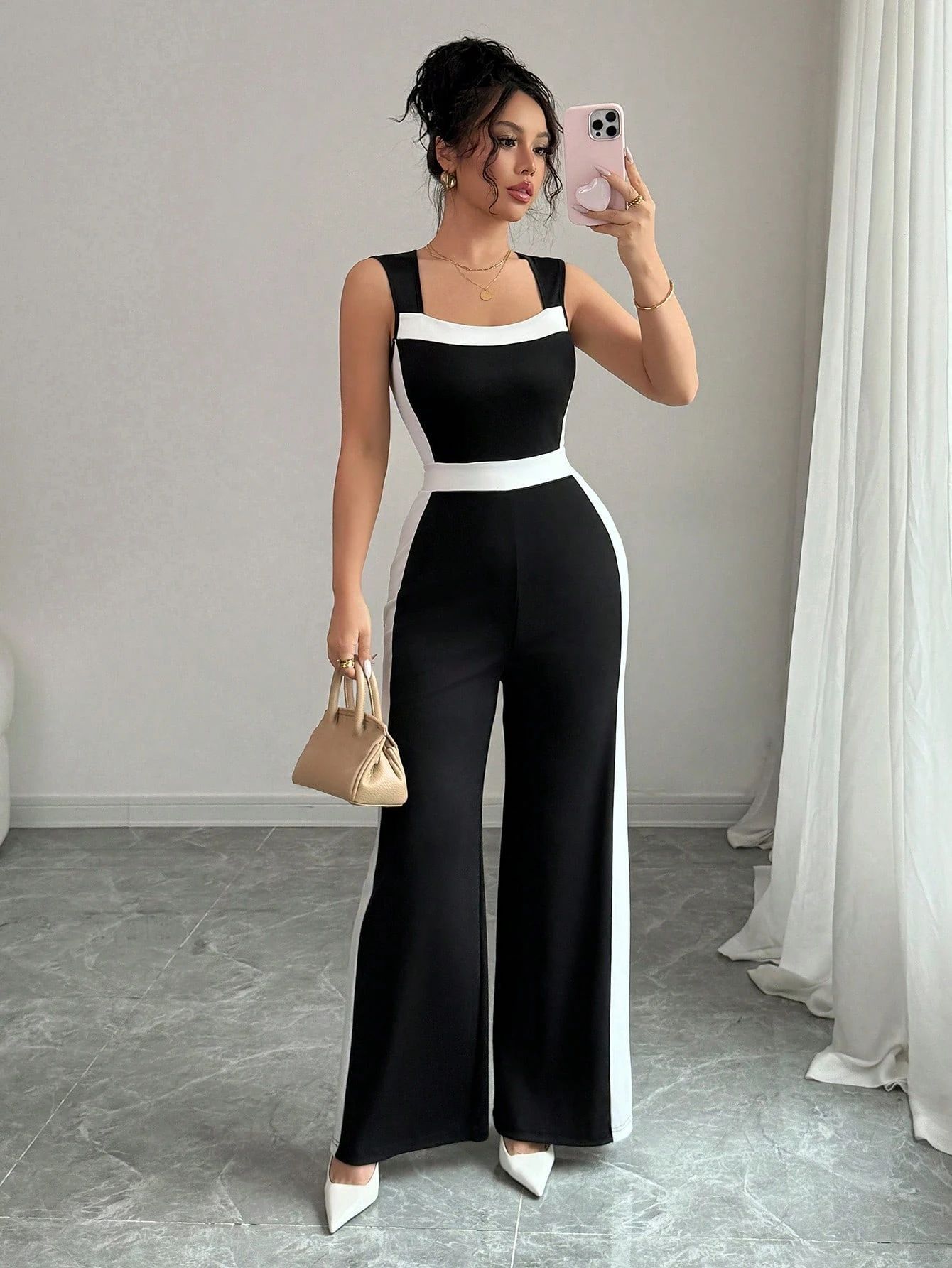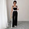 Color blocked sleeveless wide leg jumpsuit