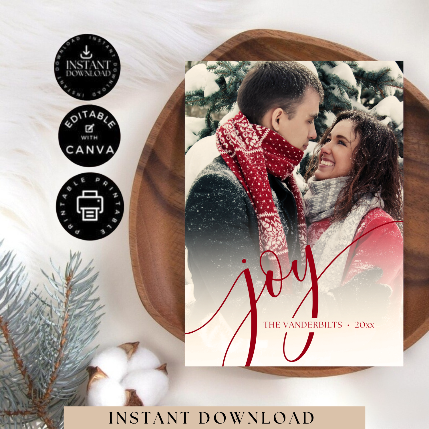 Make your holiday greetings unforgettable this year with our Joy Script Elegant Christmas Festive Photo Holiday Greeting Card!