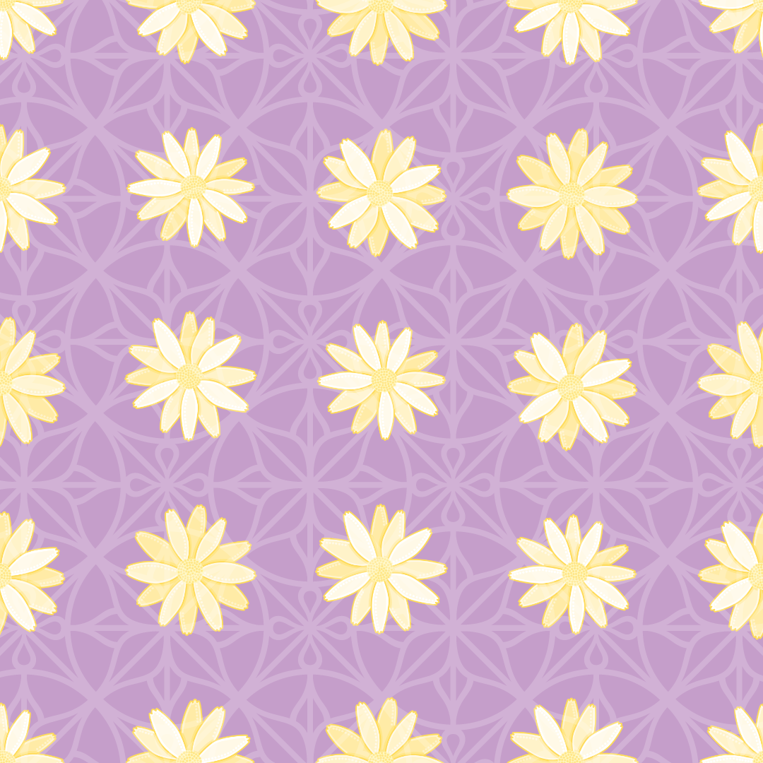 Yellow Daisies repeatable pattern. Simple floral over purple seamless vector illustration.