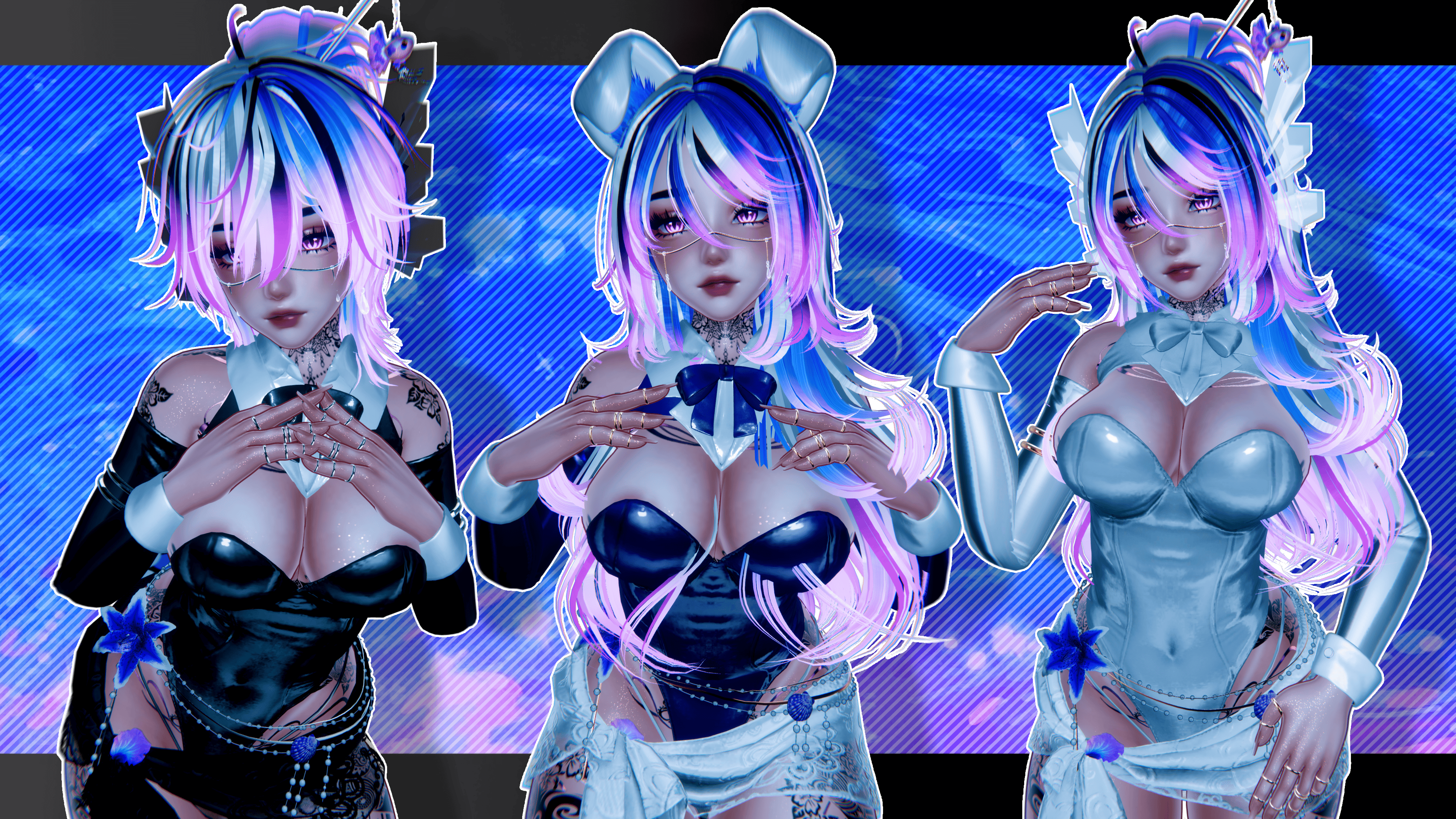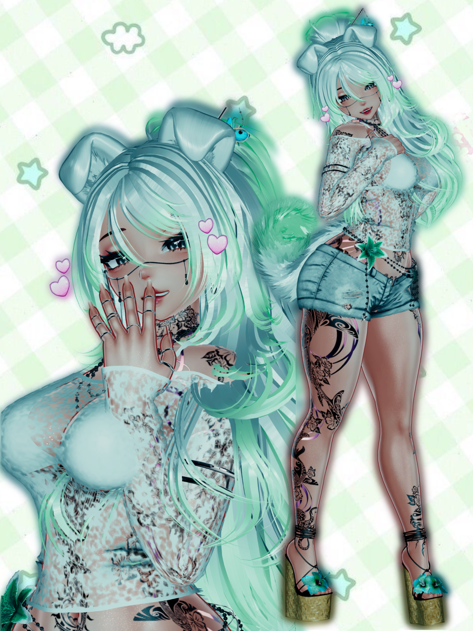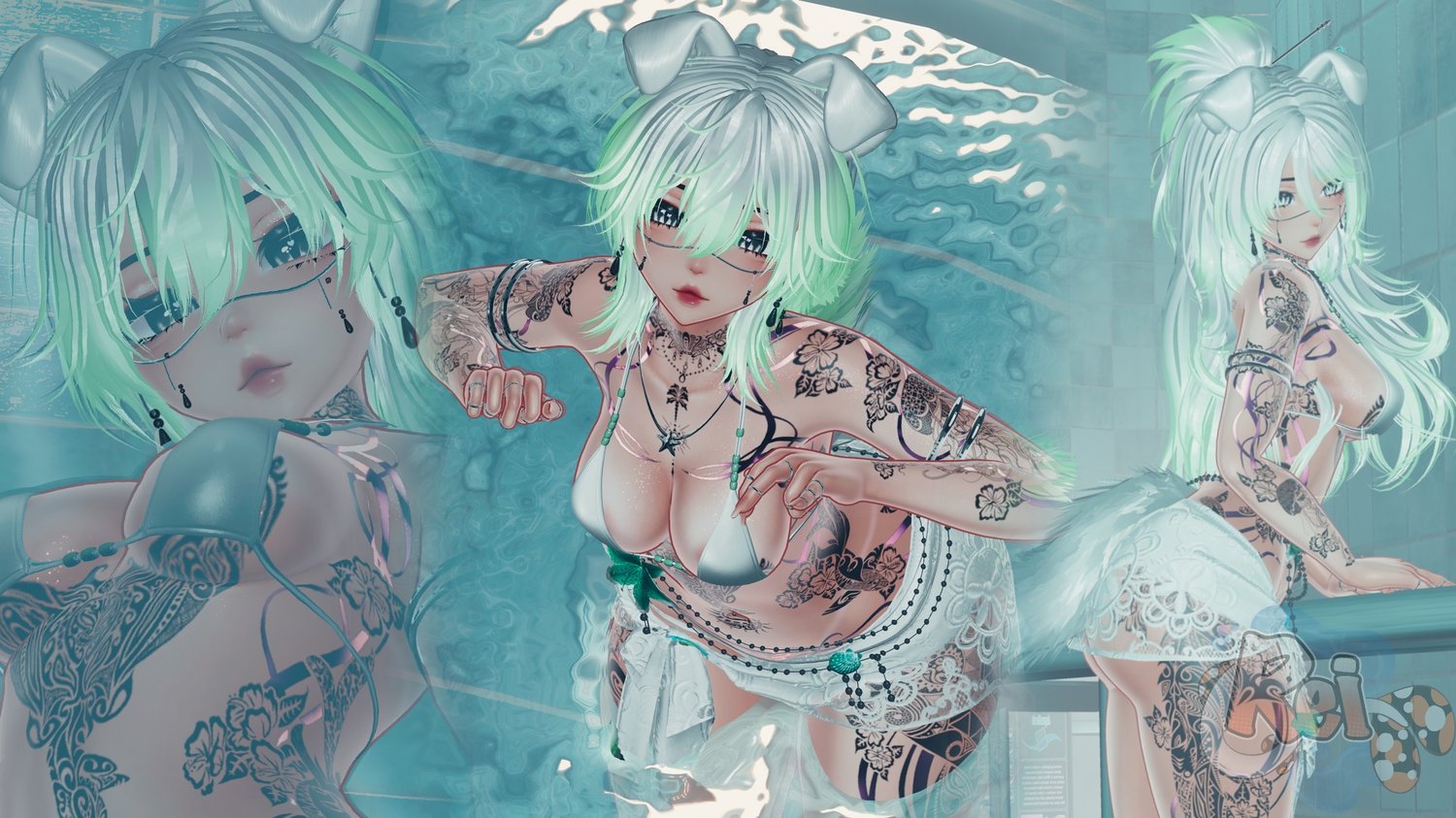 VRBASE EGIRL (my edit) - "Starlight" Anime Head - Payhip (my edit)- Amelia Head (VRChat Asset) - Face Texture - Starlight Head - Face Texture - Amelia Head - Skin Texture Pack - VR Base -Eye Texture Pack [ Nitro Asset ] (got in nitro) - Eyelashes Add-on for Amelia Head (FREE VRChat Asset) - 203 FREE CICI HAIR TEXTURE EDITS - NovaPie Hair Textures -Riptide Tattoo - Payhip - Wet Face! - Wet Skin! -Gekka's Hair for VRChat - Heather's "Gothgirl" Hair for VRChat -Hair #002 - Payhip - Koi Set {Free} (ears) - 🐟Koi Fish REDO🐟 - Payhip (tail, rerigged by me) - Puppy set (FREE) (Personal and Commercial use) – Cupkake