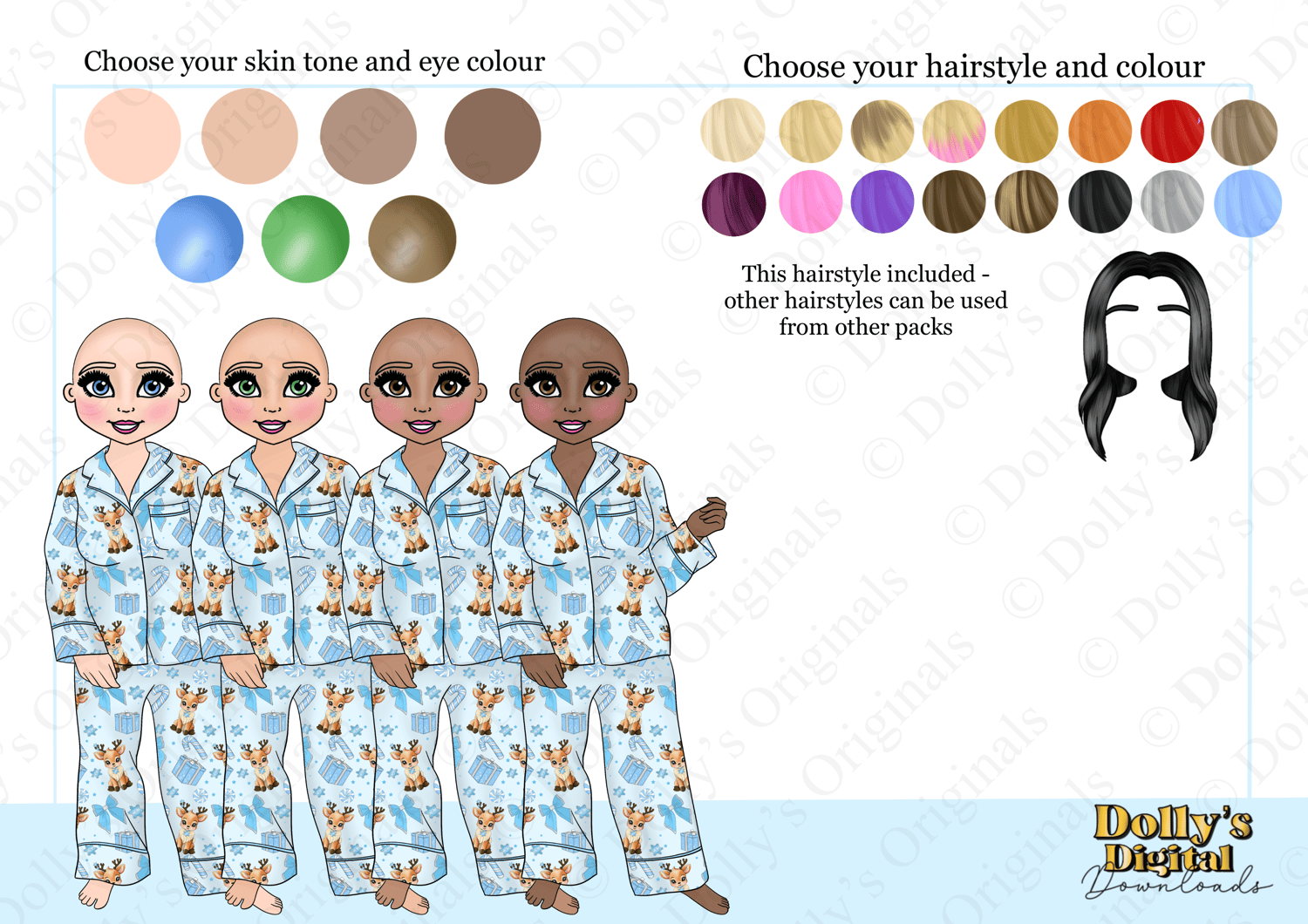 Instant digital download of our Dancer Reindeer Pyjamas Plus Size Dolly Character Bundle PNG (32 PNG’s)