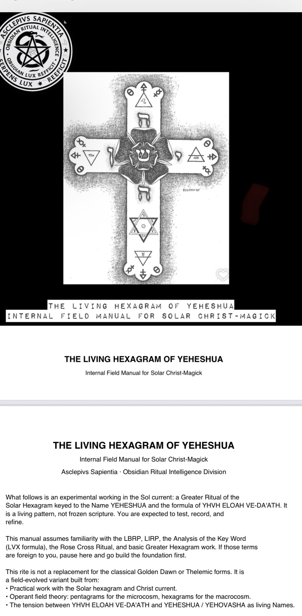 - Solved: a coherent Greater Ritual of the Solar Hexagram rooted in Christic LVX, not just inherited diagrams.