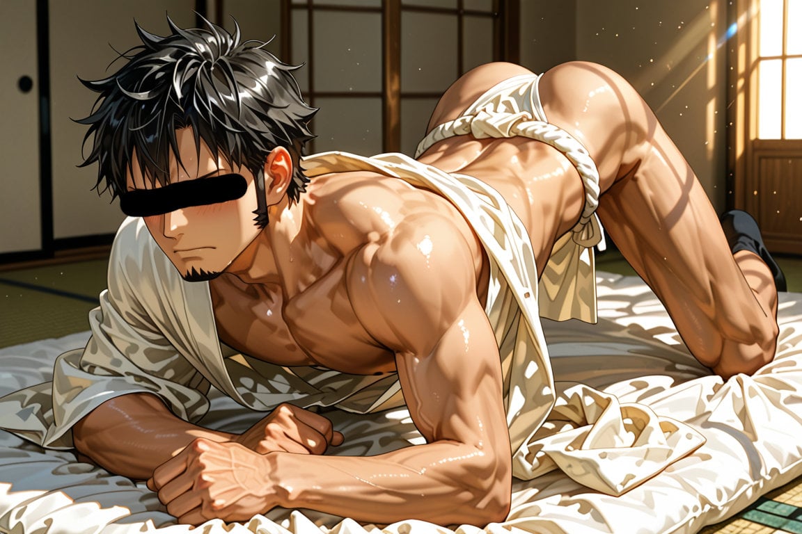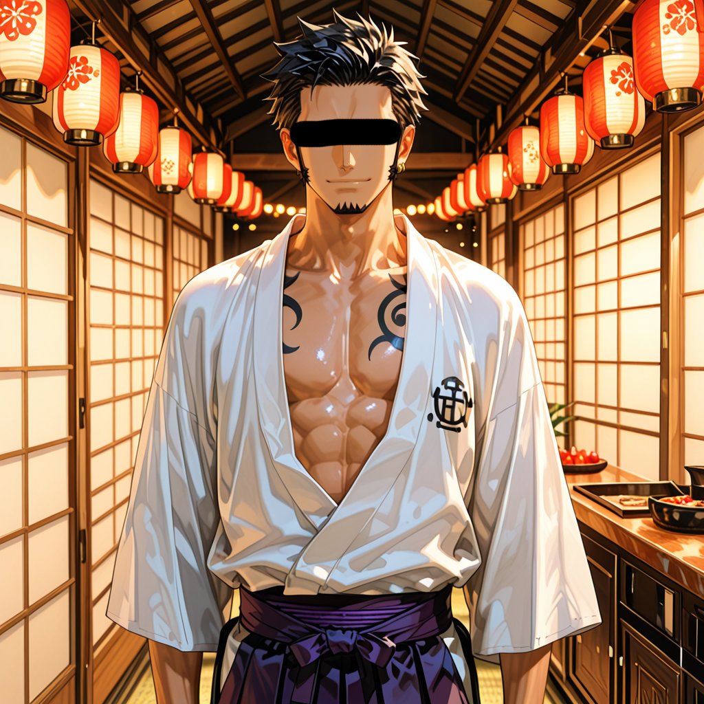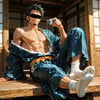 日本の正月をテーマに、着物を着用している男性を、キャラクターごとにお任せ作成しました。男らしいキャラクターの魅力を思い切って表現しました。