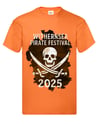 Children's Wifhernsea Pirate Festival 2025. T-Shirts are a great way to celebrate the event and to keep forever as a cherished memory. These are available in may sizes, with the orange t-shirt and DTF transfer of the logo, all created by us for you.