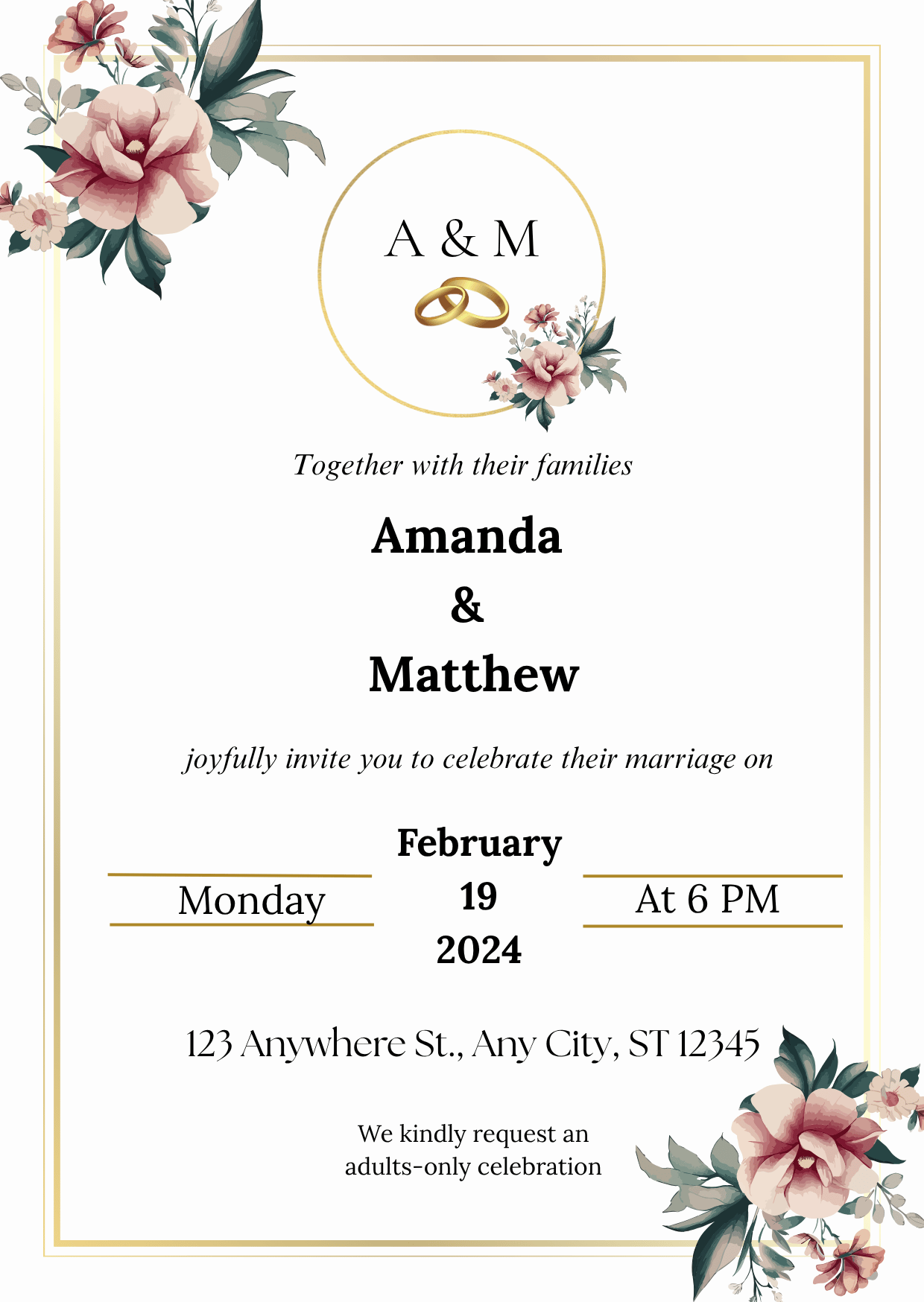Celebrate your special event with this stylish digital invitation template! Featuring soft blush florals and a subtle golden frame, this design blends timeless elegance with modern simplicity. Perfect for birthdays, showers, parties, or any special gathering, it’s fully customizable and ready to share digitally.
