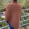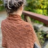 Cambium is a triangular-shaped shawl consisting of a simple cable and lace pattern interspersed with garter stitch ridges. Hudson and West’s Forge and Weld yarns both produce a soft, warm and cozy shawl with beautiful stitch definition and texture.