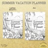 Summer Vacation Planner Black & White Coloring Pages Printable