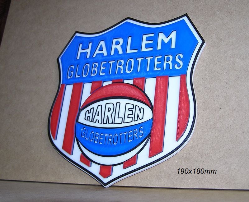 Poster, Sign, Logo of the NBA Basketball: Harlen Globetrotters, these STL and Gcode files have been created to be printed in various colors with any FDM type printer. The color changes have been made with the Elegoo Neptune 3 Pro printer, but they can be printed on any printer.