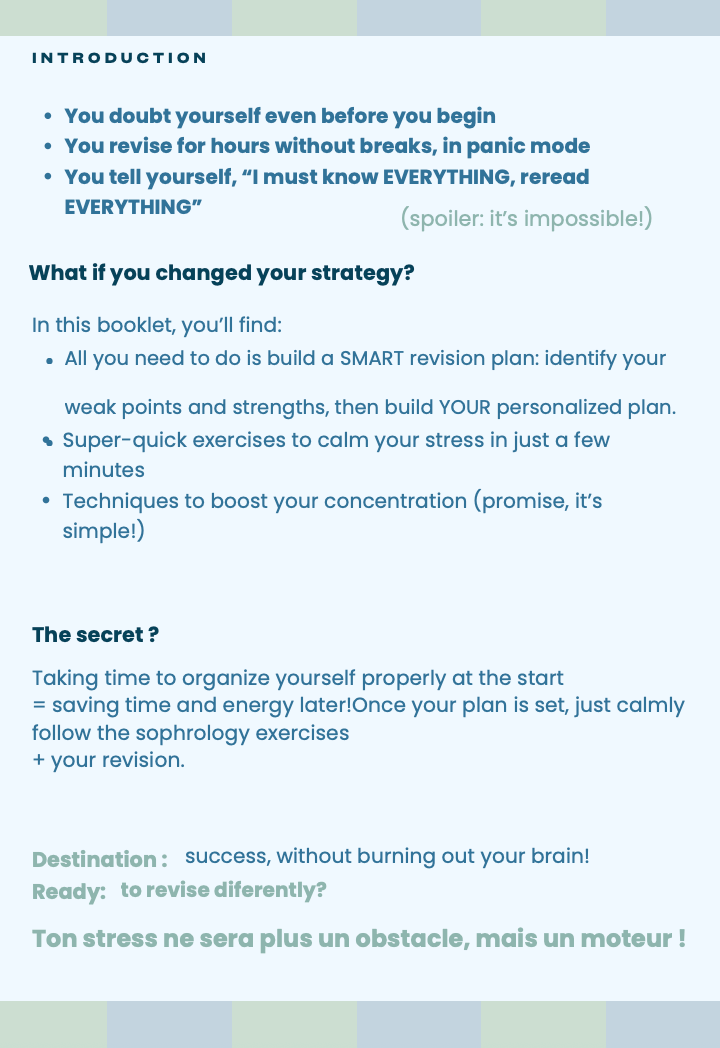Created by a certified sophrology therapist, this guide distills the key insights of a full professional coaching program into a practical, immediately applicable tool.