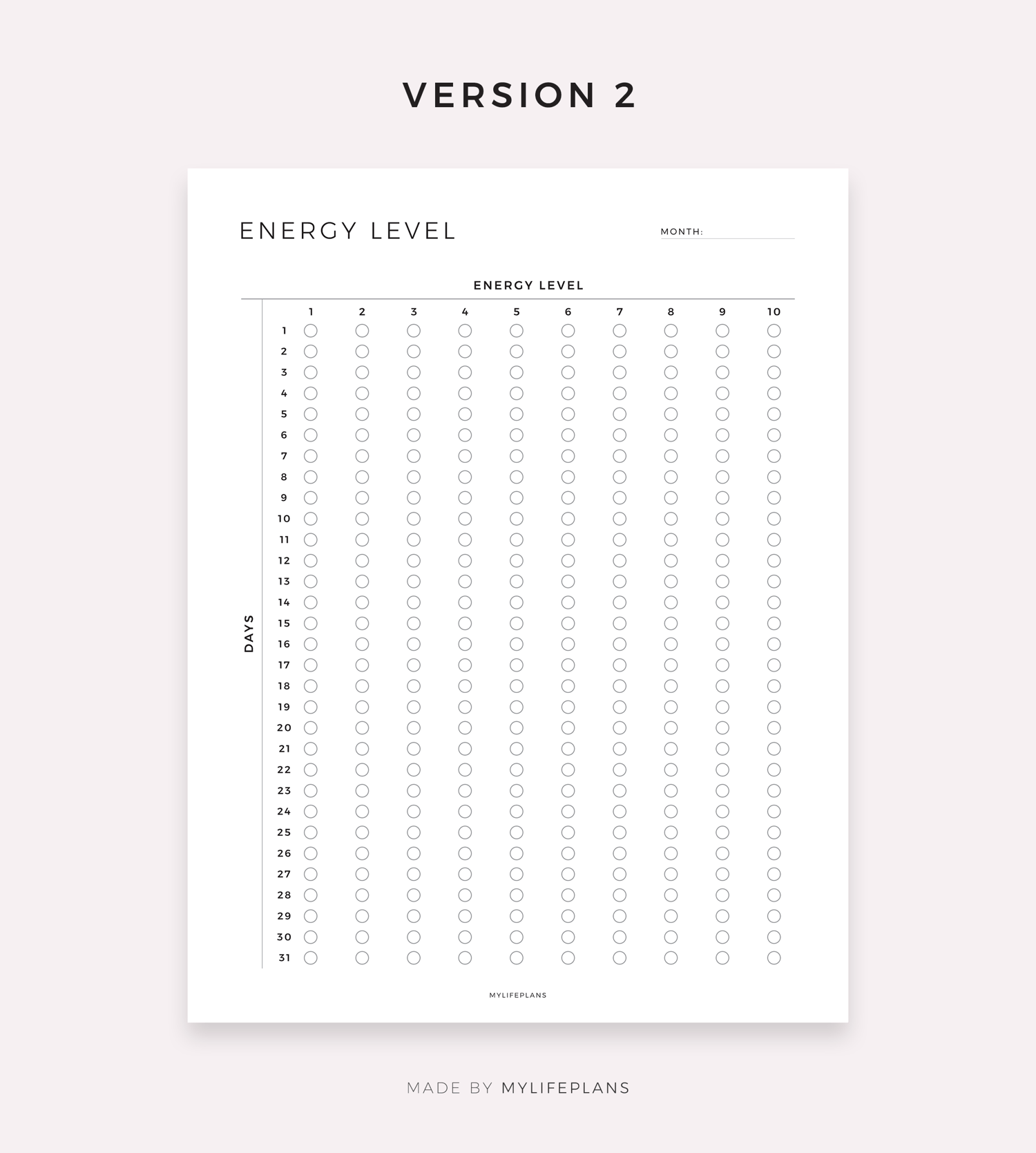 Daily Energy Level Tracker, Digital Template for Goodnotes, Notability, Ipad