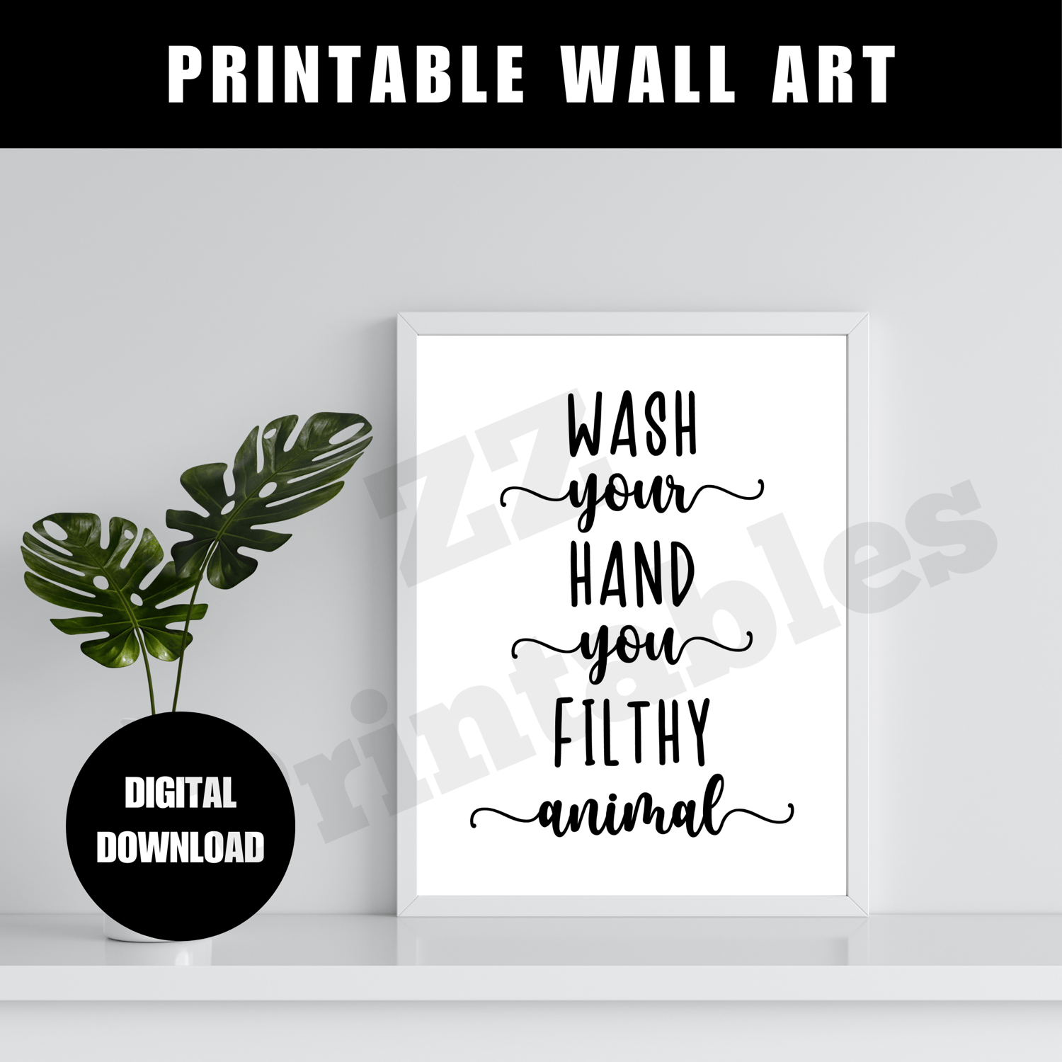 Wash Your Hands You Filthy Animal Print Funny Guest Toilet Wall Art Quote Poster Bathroom Decor White Black Printable Digital Download JPEG
