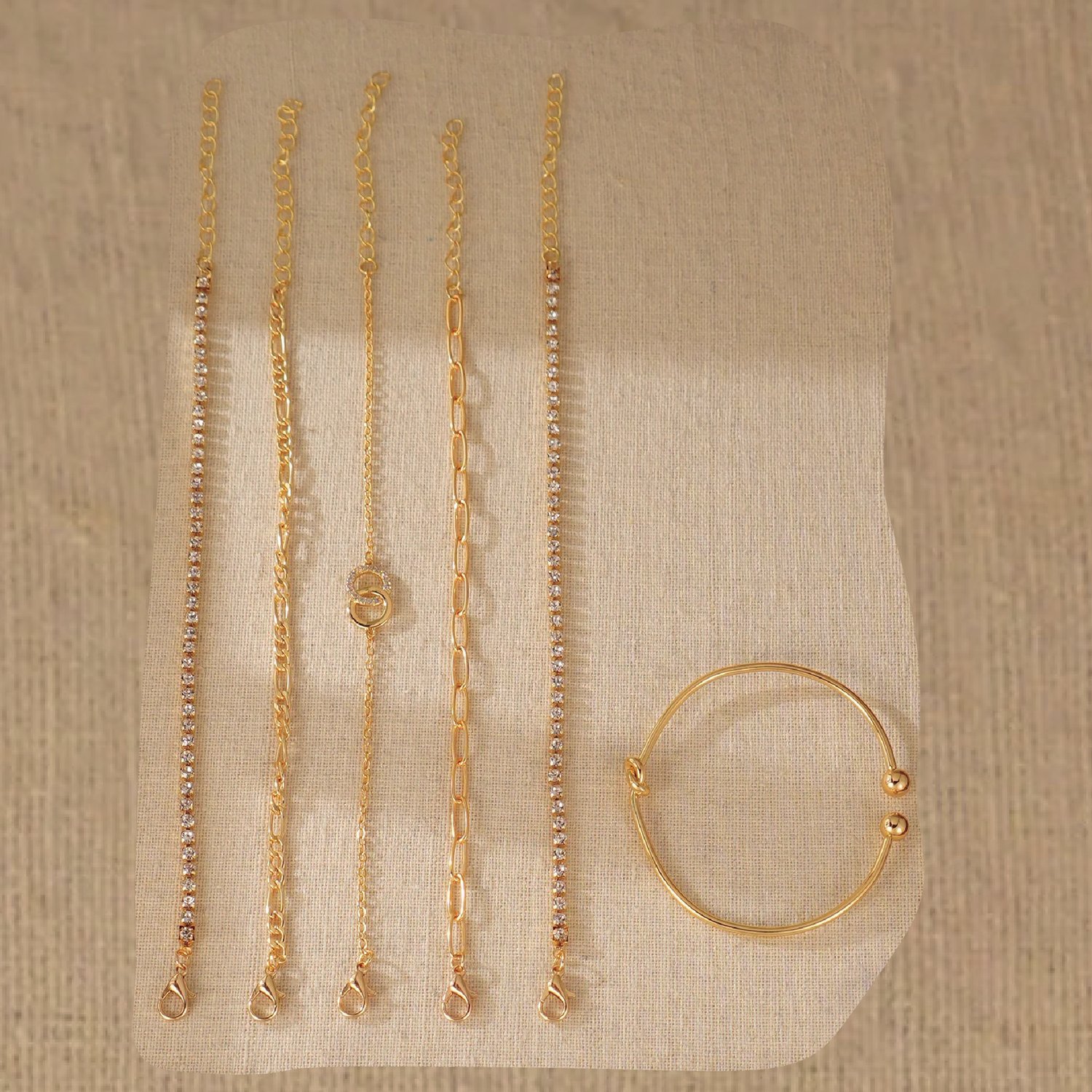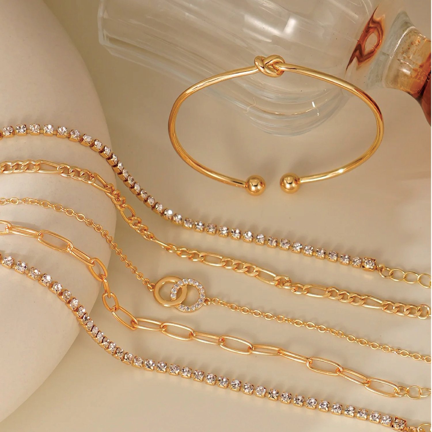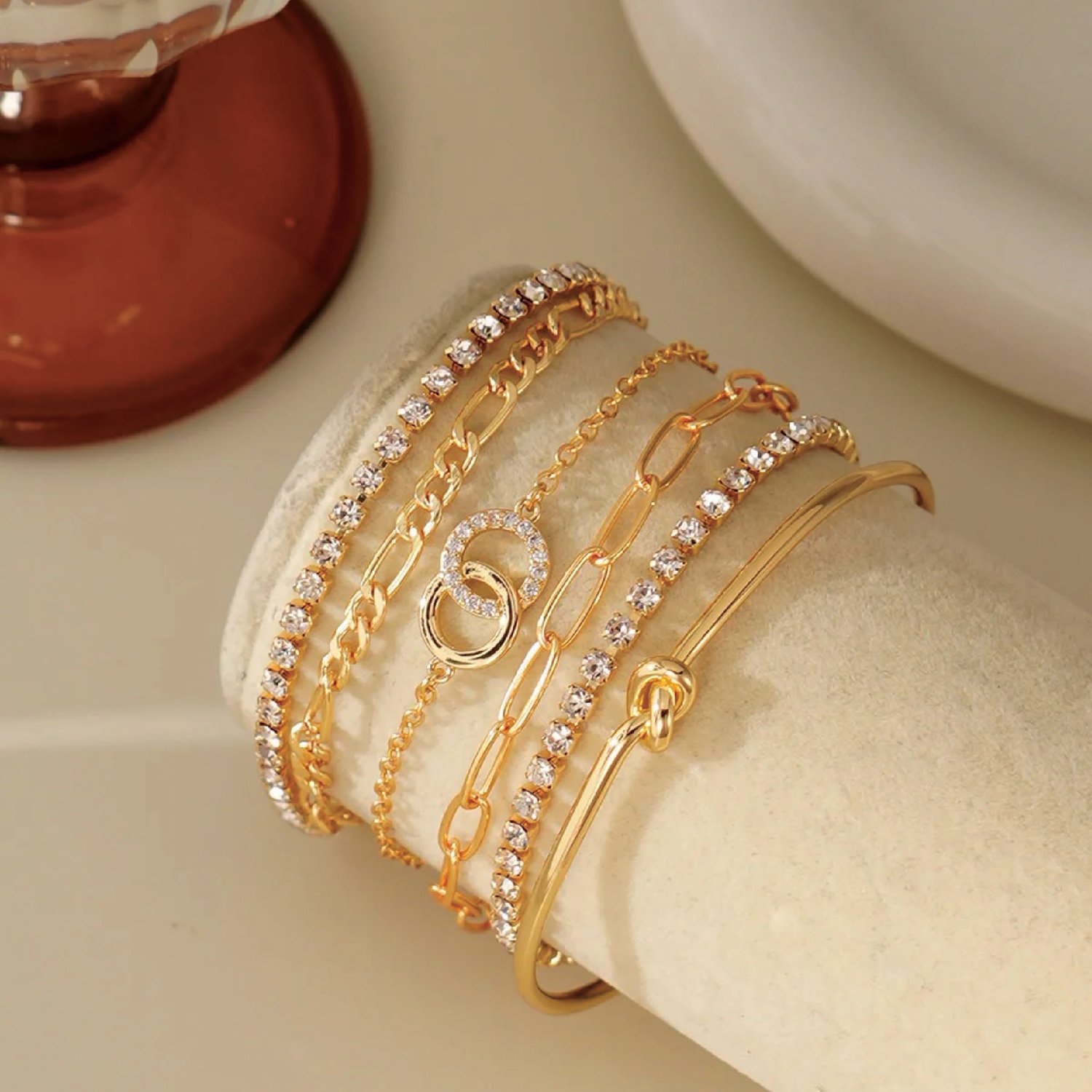 Grace & Lumière : Set de 6 Bracelets Dorés Élégants en Zircone Cubique
