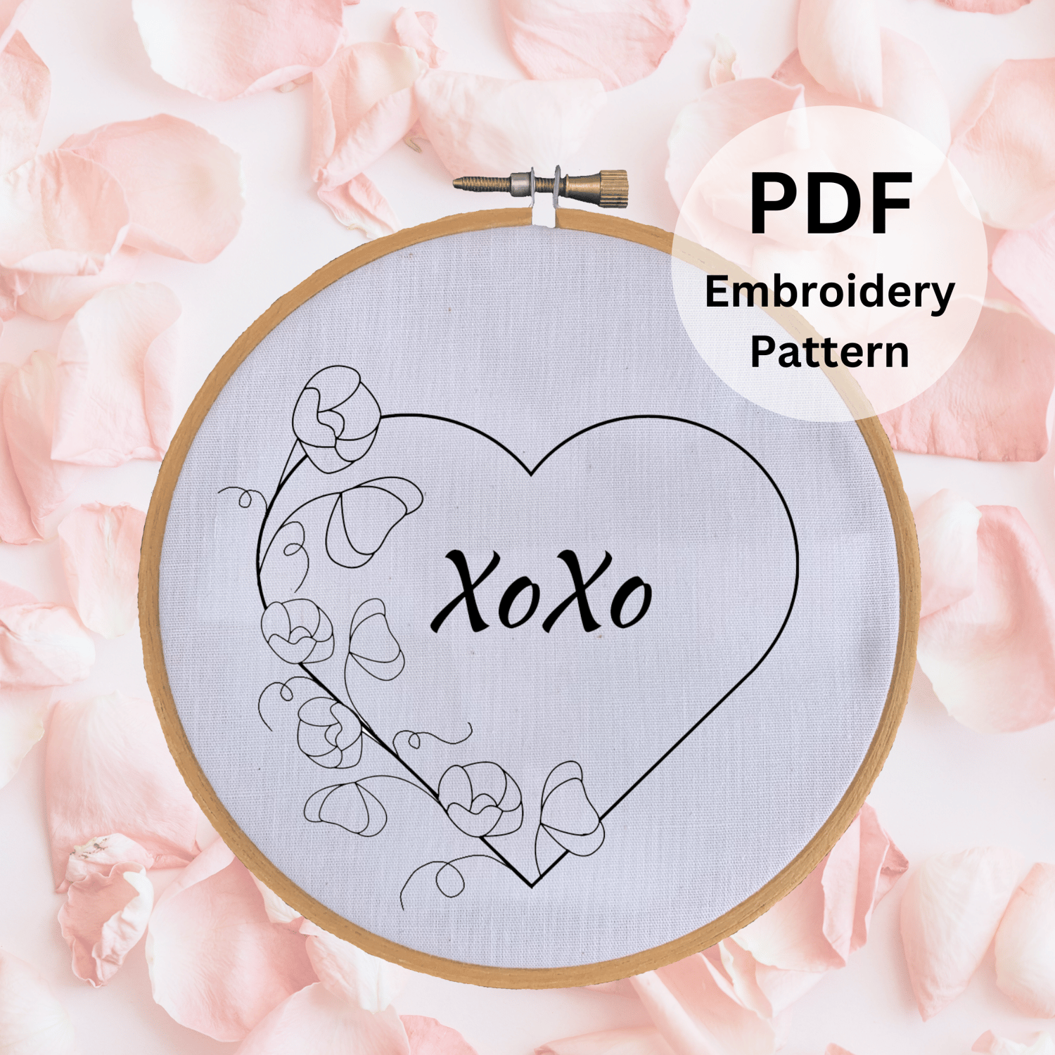 Spread love and creativity this Valentine's Day with this "XOXO" heart embroidery pattern, available in 5 adorable sizes!