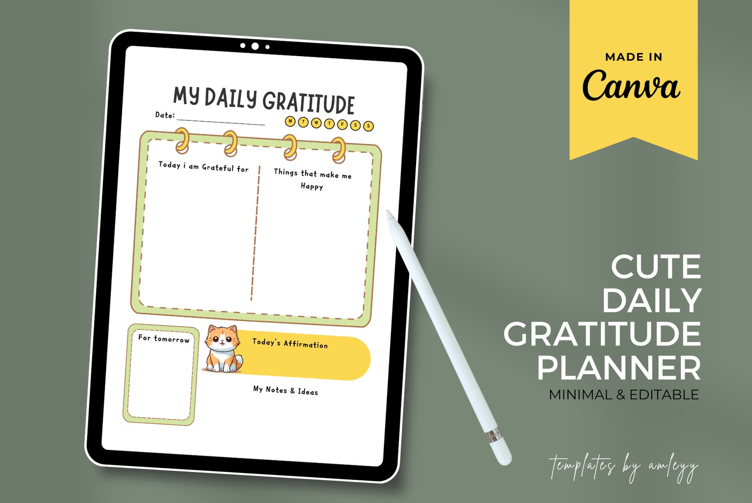 Cute Daily Gratitude Planner Template | Printable Digital Planner