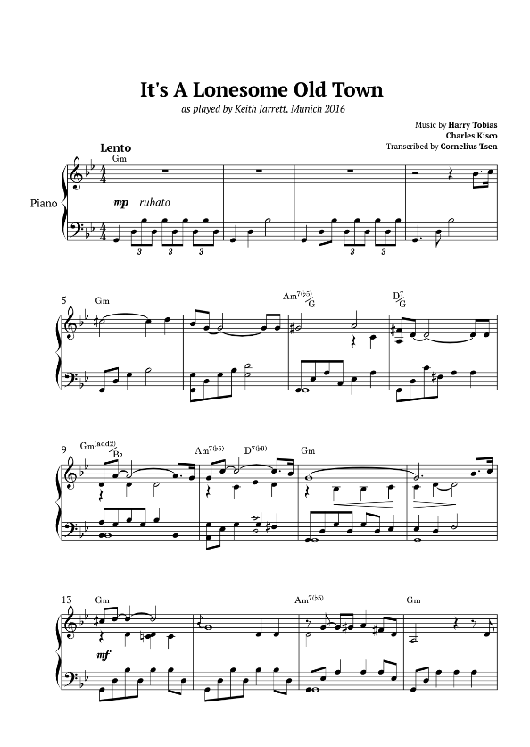It's a Lonesome Old Town - Keith Jarrett (5 pages)