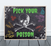 Halloween Candy Sign | Pick Your Poison | Spooky Bar Decor | Colorful Skull and Candy Art | Printable Party Supplies | Fun Front Door Sign |