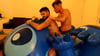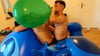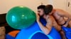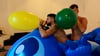 First Nelson and Kyllan blow balloon on it and burst them and then they deflate the stitch.