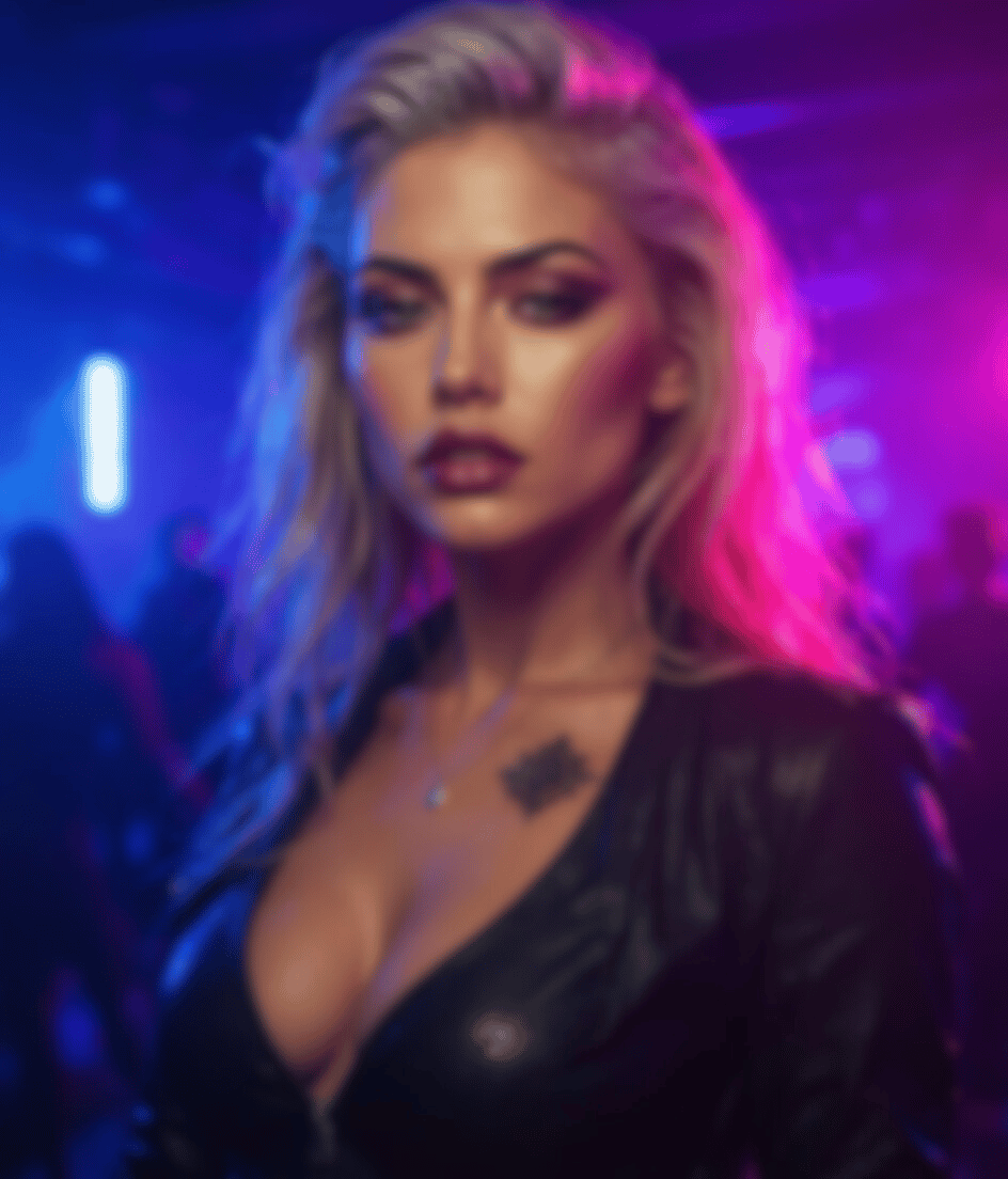 ⚡ She moves through the neon haze of tomorrow’s night.