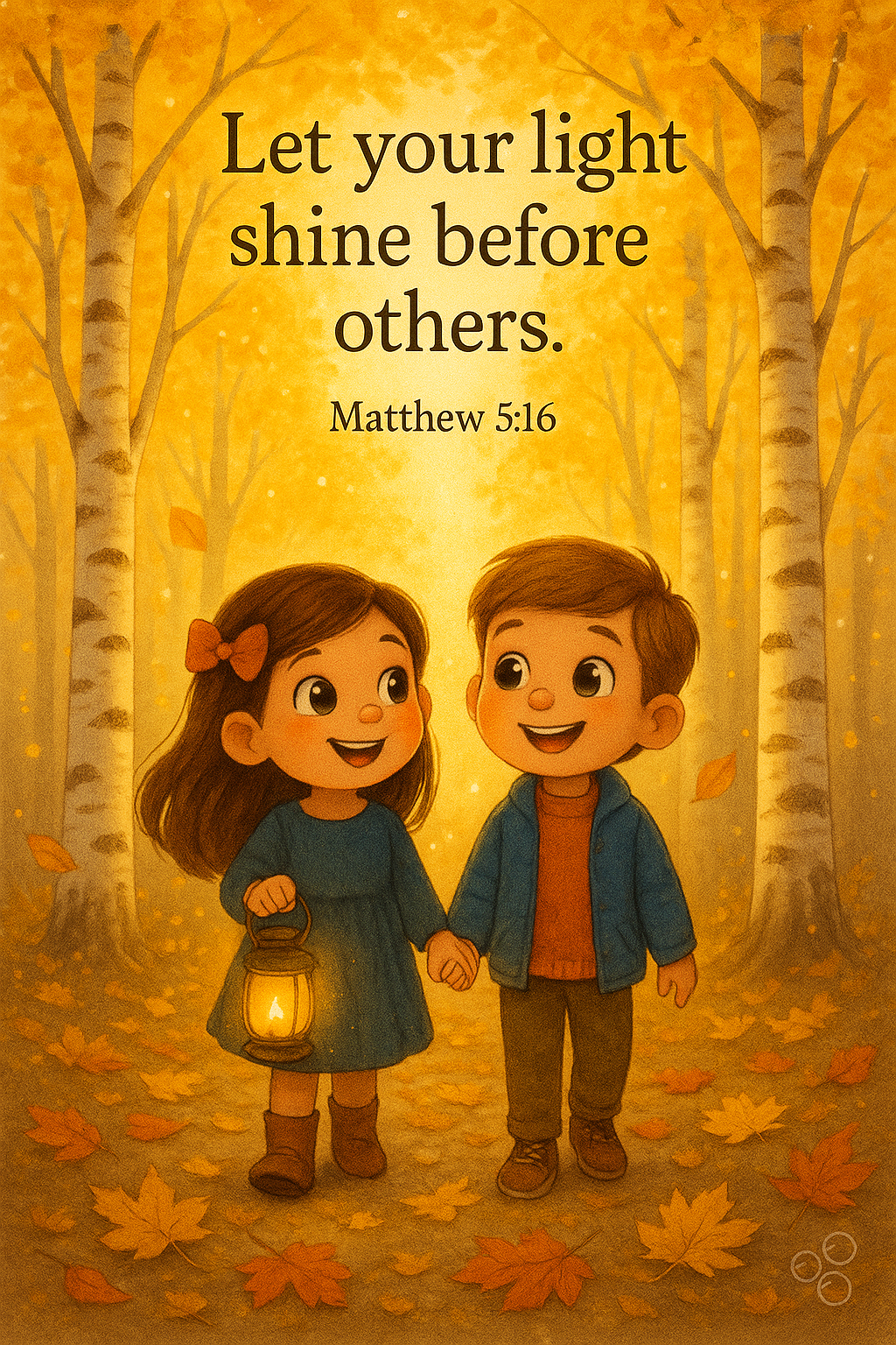 Celebrate the light within with this Shine Before Others Scripture Poster, featuring two joyful children walking through a golden forest path, hand in hand. With warm tones, glowing birch trees, and a radiant lantern, this printable brings spiritual illumination and emotional warmth to any space — anchored in Matthew 5:16, it’s perfect for Thanksgiving bundles, homeschool walls, or ministry kits.