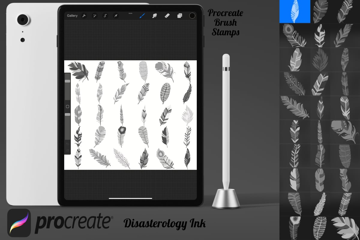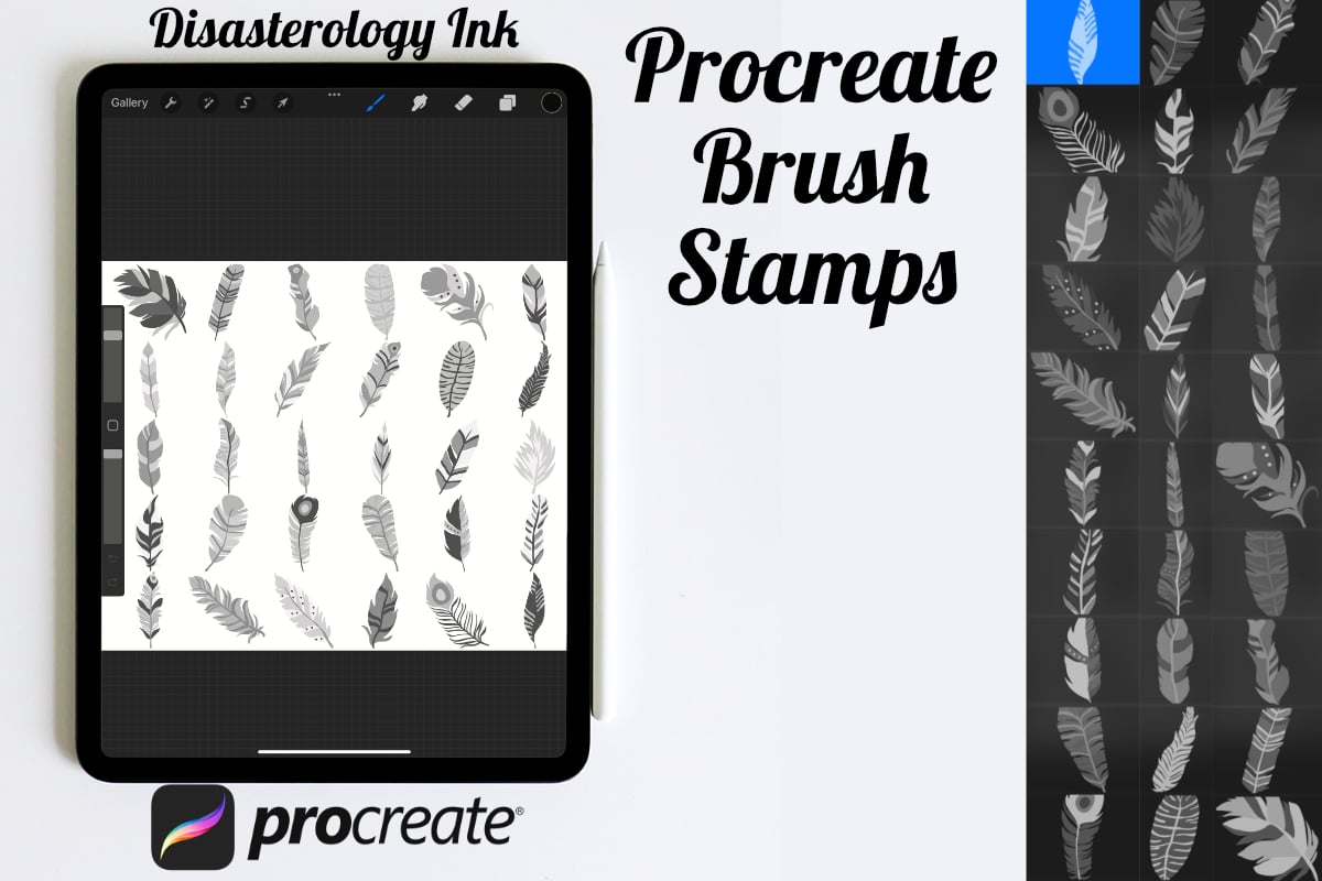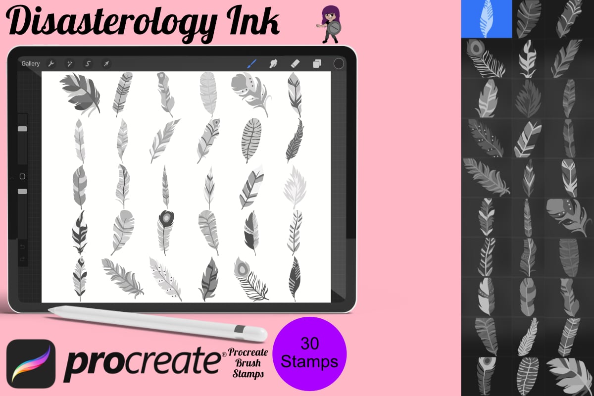 Feathers Set 4 Procreate Brush Stamps, 30 Feather Stamps