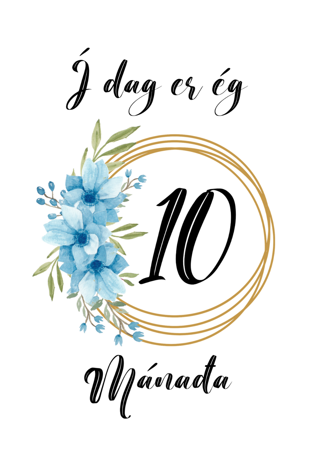 Mánaðarspjöld til útprentunar - blá blóm