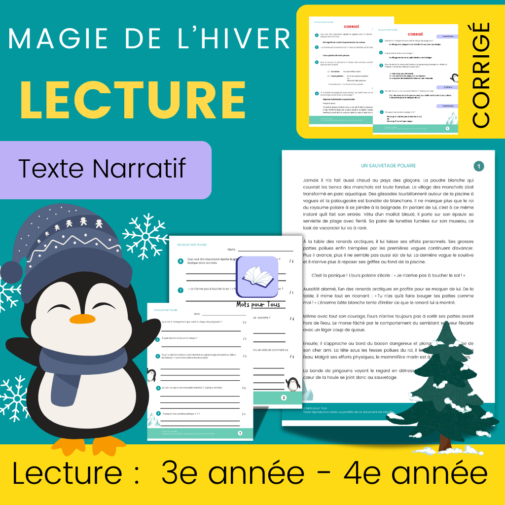 Découvrez le bundle “Spécial Hiver — 4 textes (narratif + informatif) – 2e cycle” : variété de genres, plus de questions, corrigés inclus.