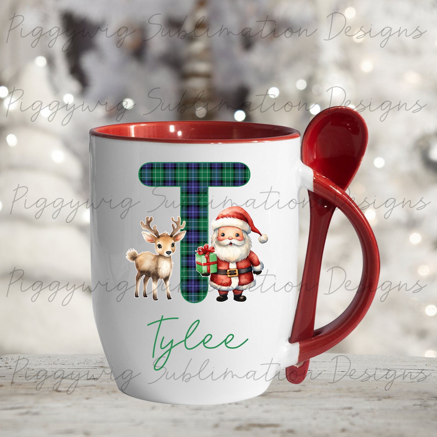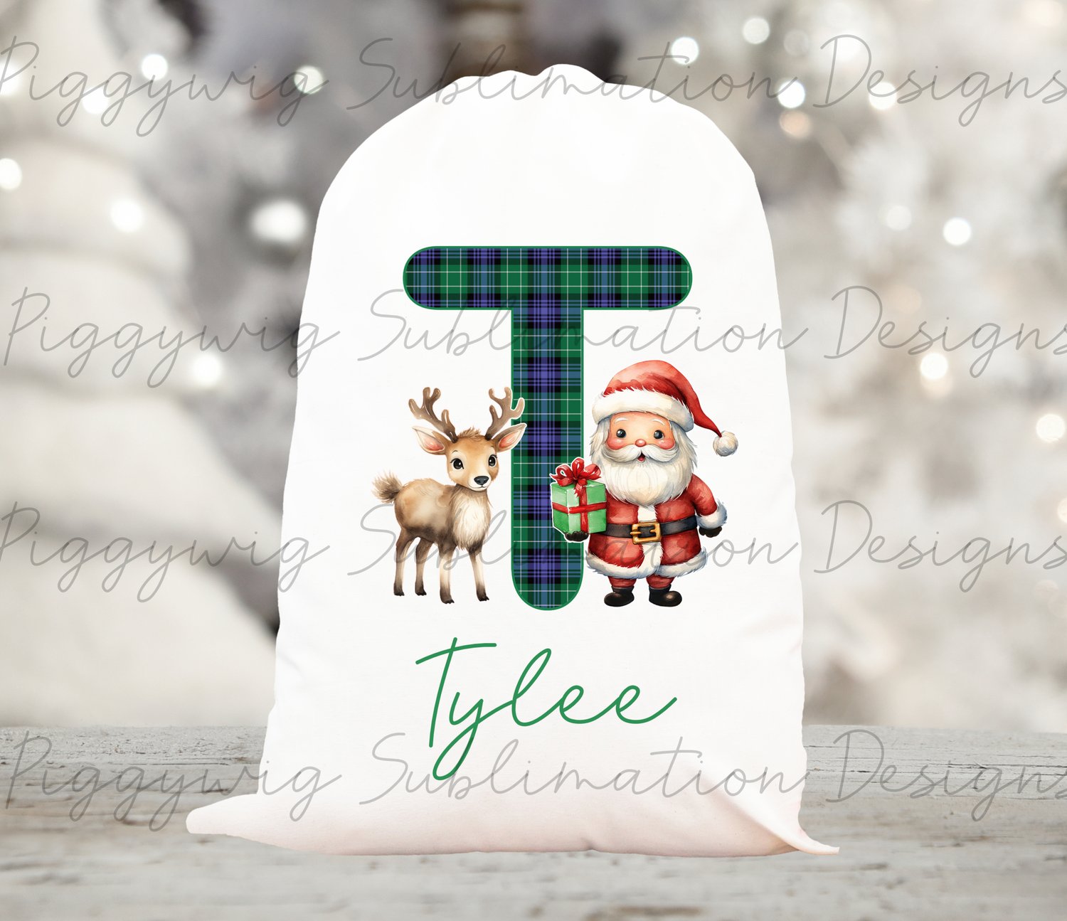 Blue Tartan Santa and Reindeer Alphabet and Number Clipart Set