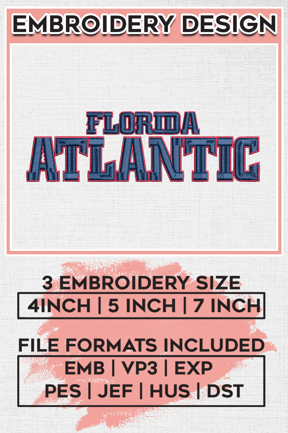 Florida Atlantic NCAA Team Word Logo Embroidery Designs, NCAA Florida Atlantic Owls Machine Embroidery Files, NCAA Logo embroidery designs, Ncaa Florida Atlantic Logo, Digital Download