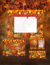 - Festive Thanksgiving design with fall leaves, cornucopia, pumpkins, and cozy seasonal elements